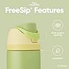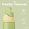 Patented FreeSip spout designed for either sipping upright through the built-in straw or tilting back to swig from the spout opening