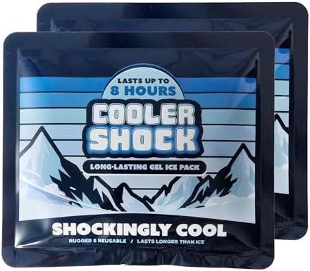 Cooler Shock Reusable Ice Packs for Cooler - Long Lasting Cold Freezer Packs for Coolers and Lunch Boxes - Cooler Ice Packs for Camping Gear, Fishing, Road Trips, Beach Must Haves