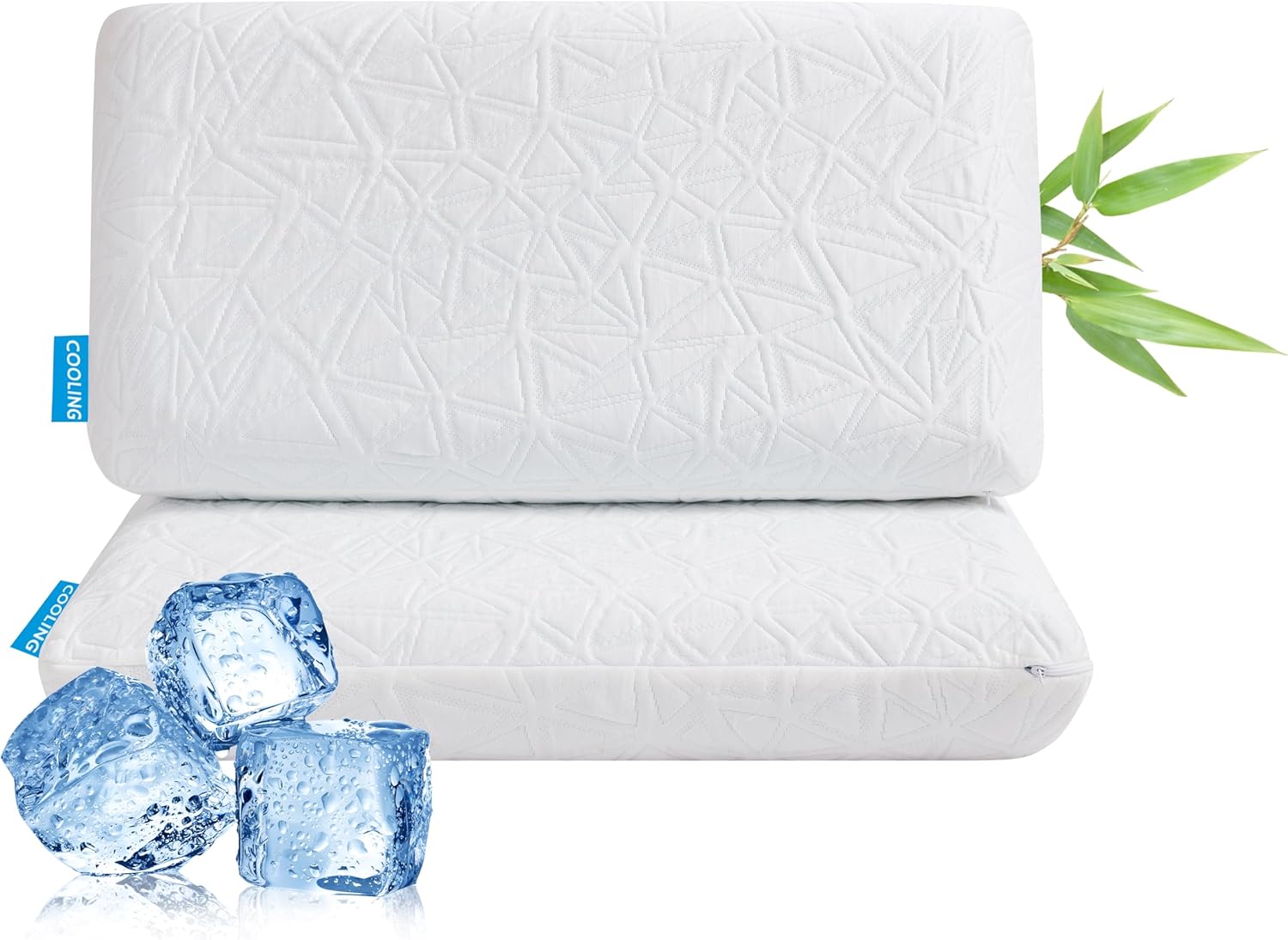 【Cool Gel Infusion】 Designed for cooler sleep, this memory foam pillow is infused with blue gel beads and ventilated to increase breathability and help dissipate body heat for a more comfortable sleep temperature