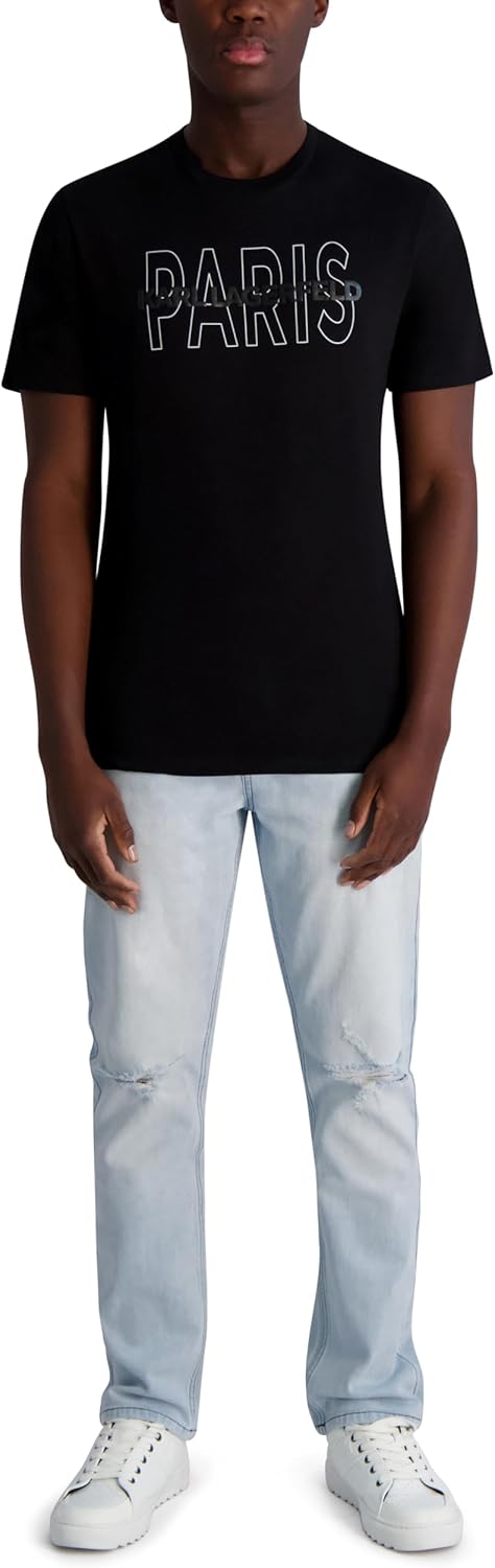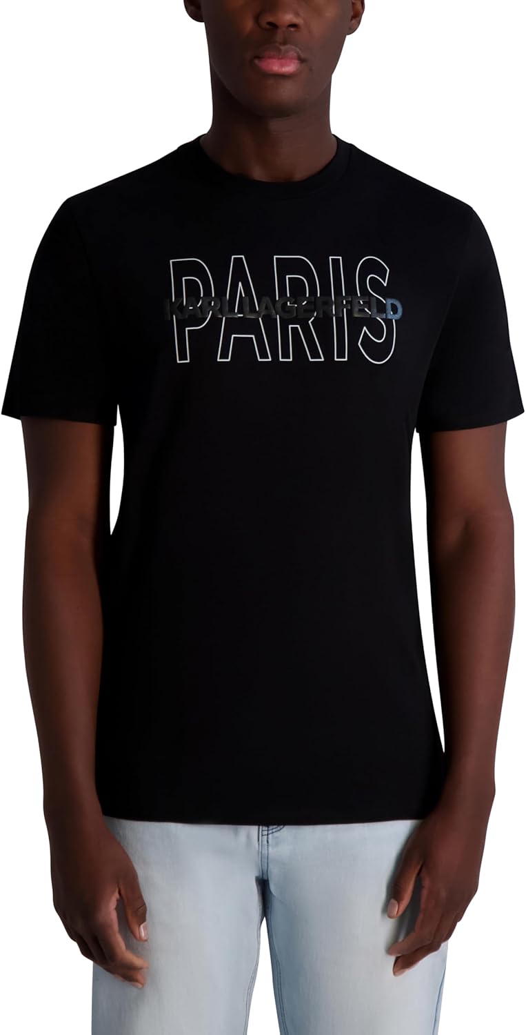 KARL LAGERFELD Men's Short Sleeve Crewneck Paris Logo Graphic Design T-Shirt