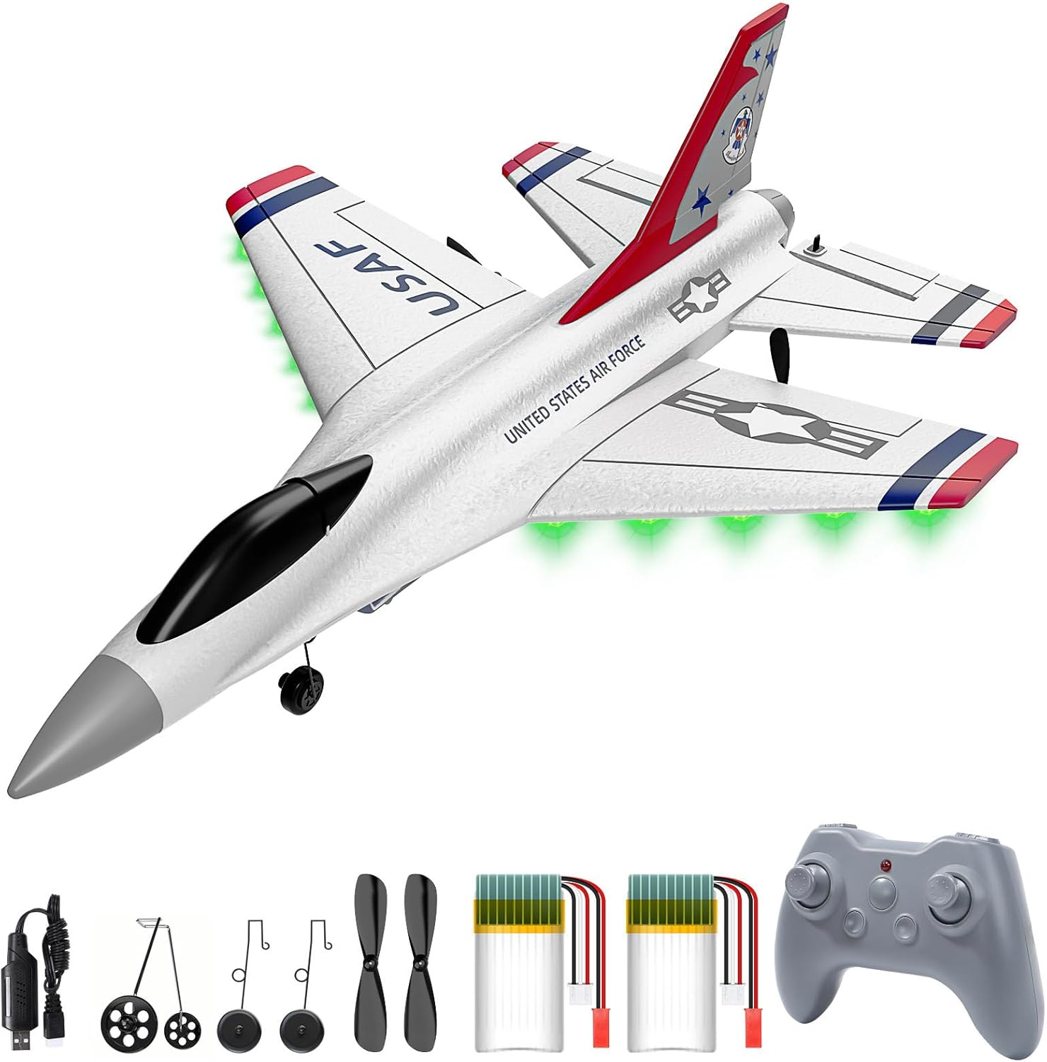 【Realistic Thunderbirds Look – Fly with Pride & Imagination】Inspired by the legendary F16 Thunderbirds, this RC plane combines true-to-life details with vibrant lights to spark every kid’s dream of flying.