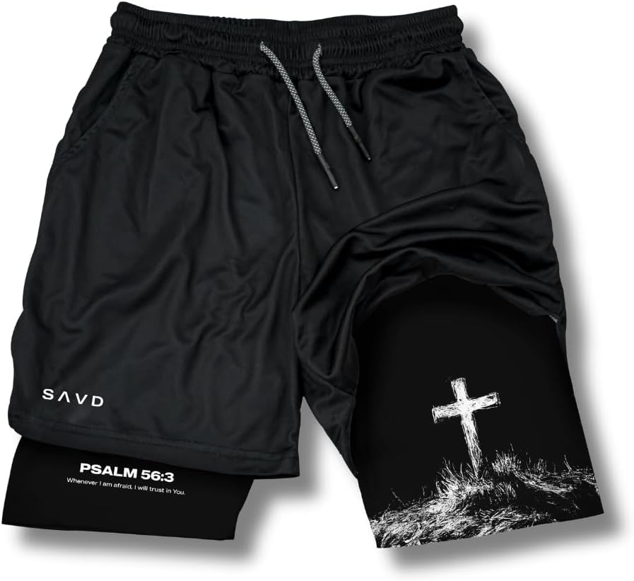 SAVD Christian Performance Shorts - Youth/Kids Gym & Sport Shorts with Pockets & Compression Liner, Bible Verse Activewear