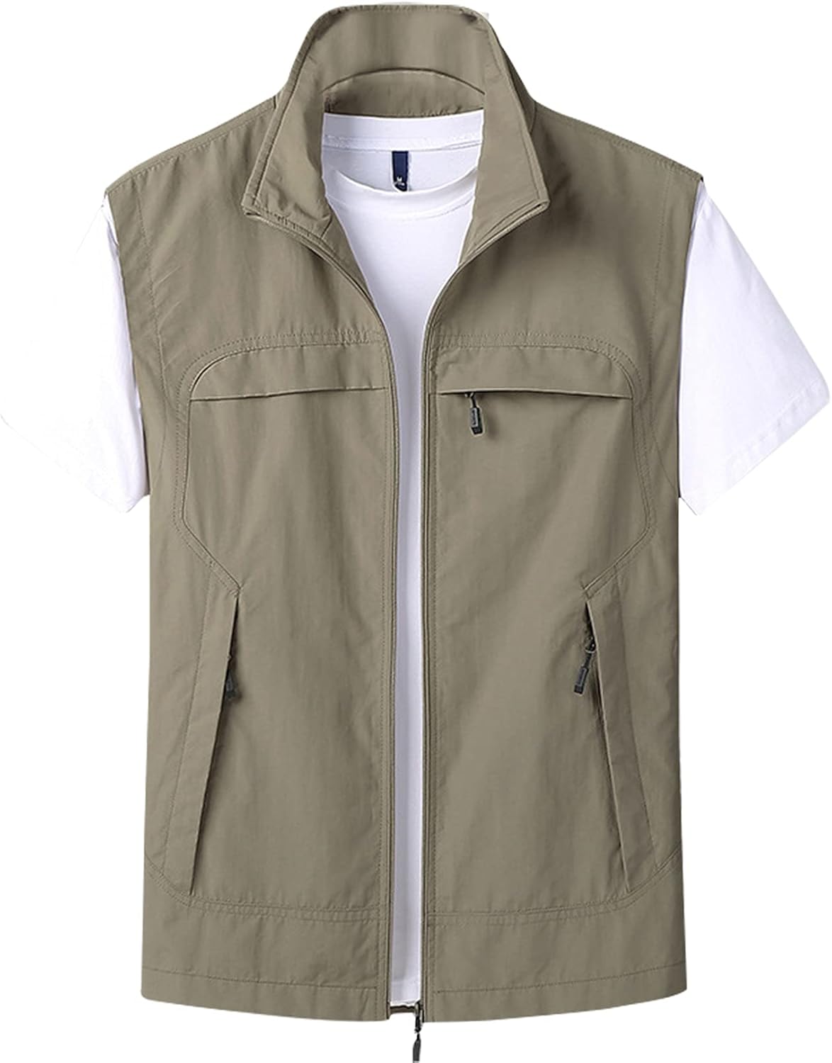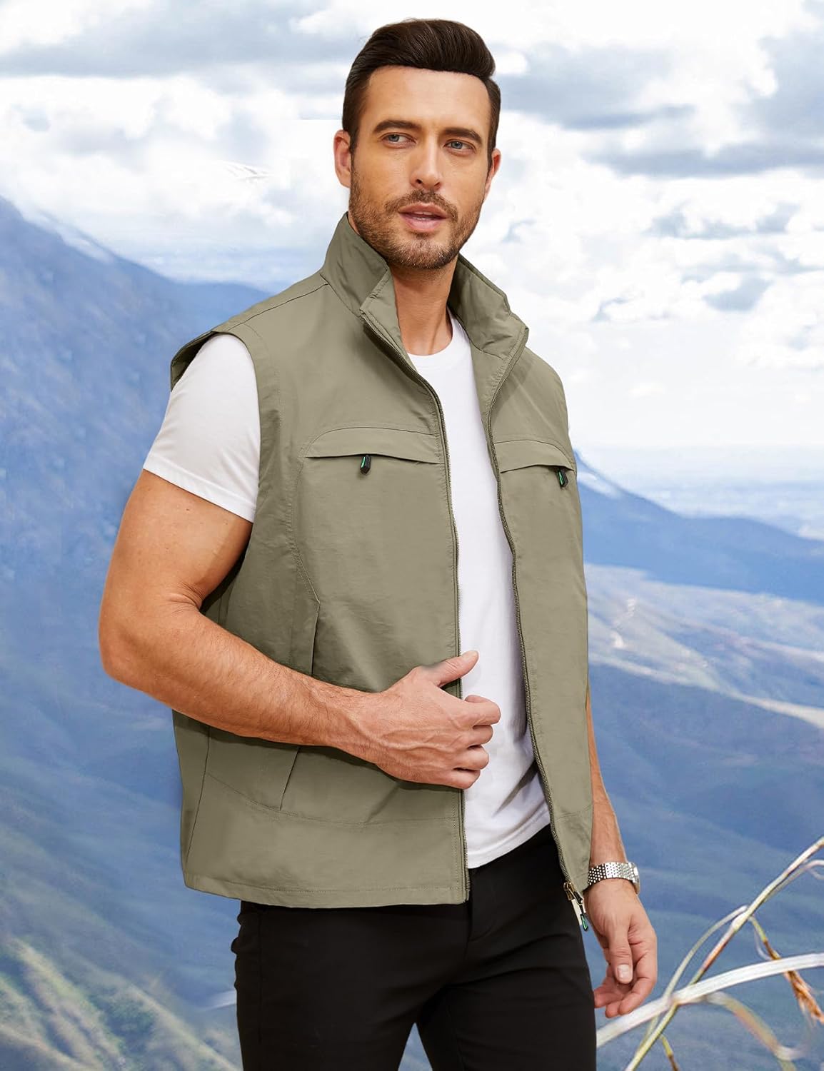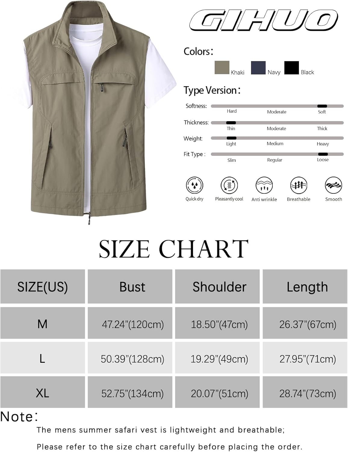 Gihuo Mens Casual Lightweight Travel Vest Summer Utility Safari Vest Sleeveless Jackets for Travel Hiking Fishing