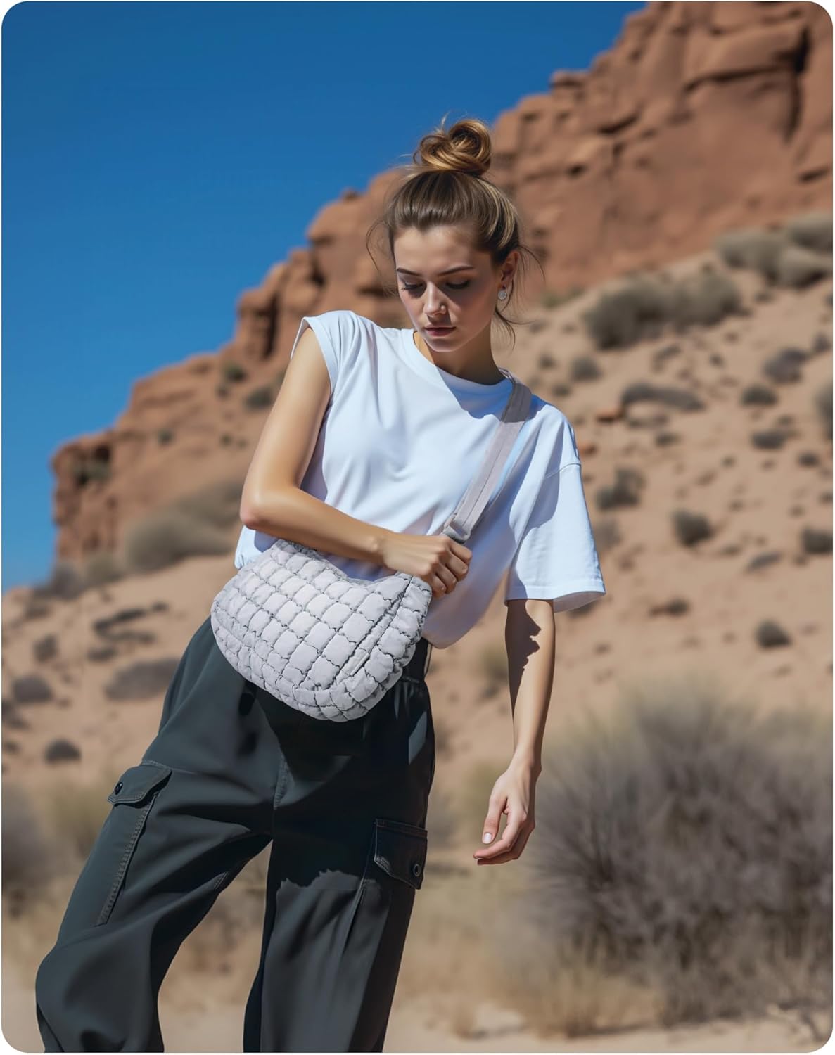 BAGSMART Quilted Puffy Crossbody Bag for Women, Medium Cute Hobo Shoulder Purse Soft Fluffy Handbag for Daily Use