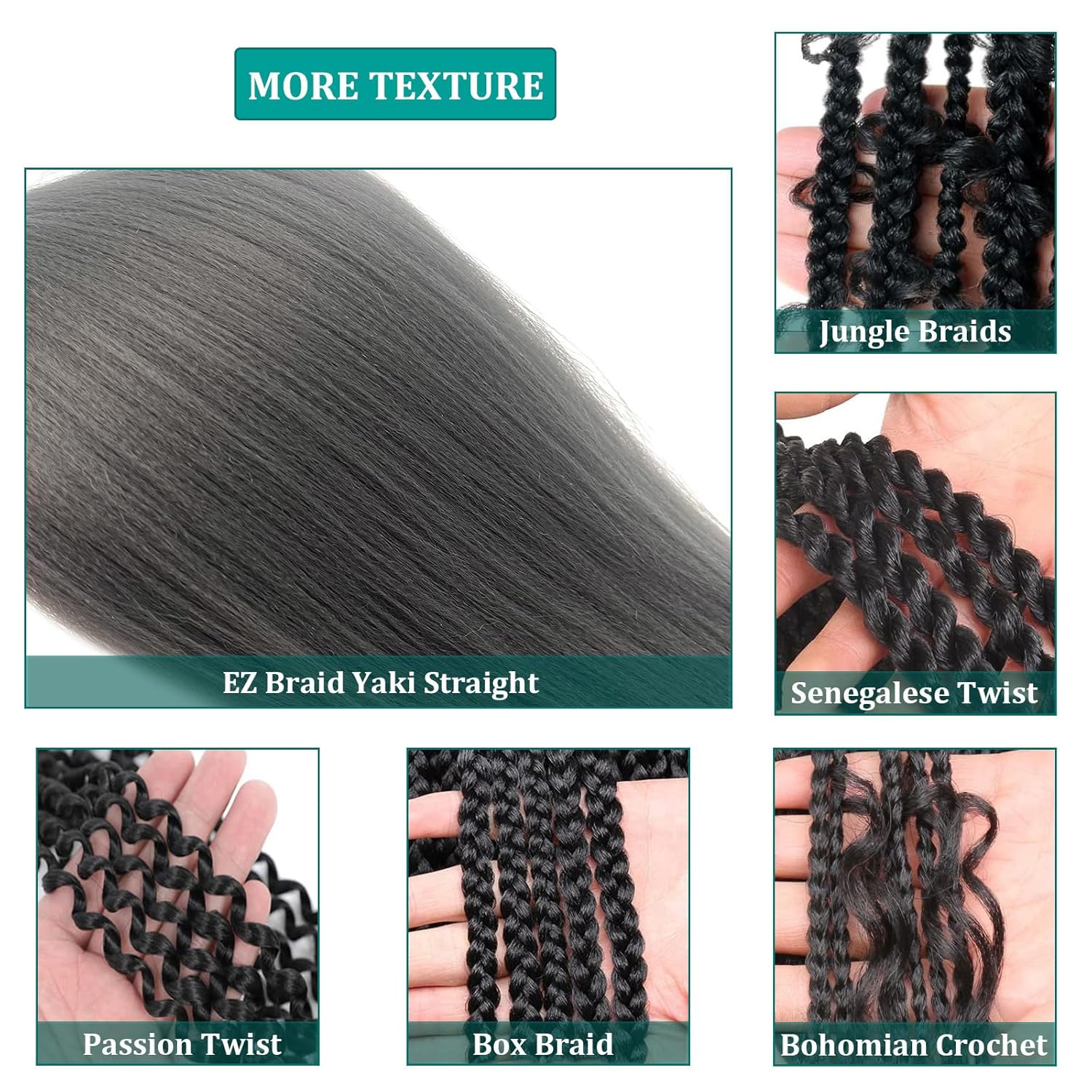 ❤️ Gray Braiding Hair Material: Hypoallergenic Braiding Hair Pre Stretched Grey Is Made By High-Quality Synthetic Fiber, Feel Soft As Human Hair for Braiding Black Women Kids