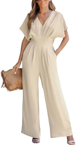 CUPSHE One Piece Jumpsuits for Women Casual Summer V Neck Batwing Sleeve Wide Leg Elegant Overalls Sexy Vacation Outfits
