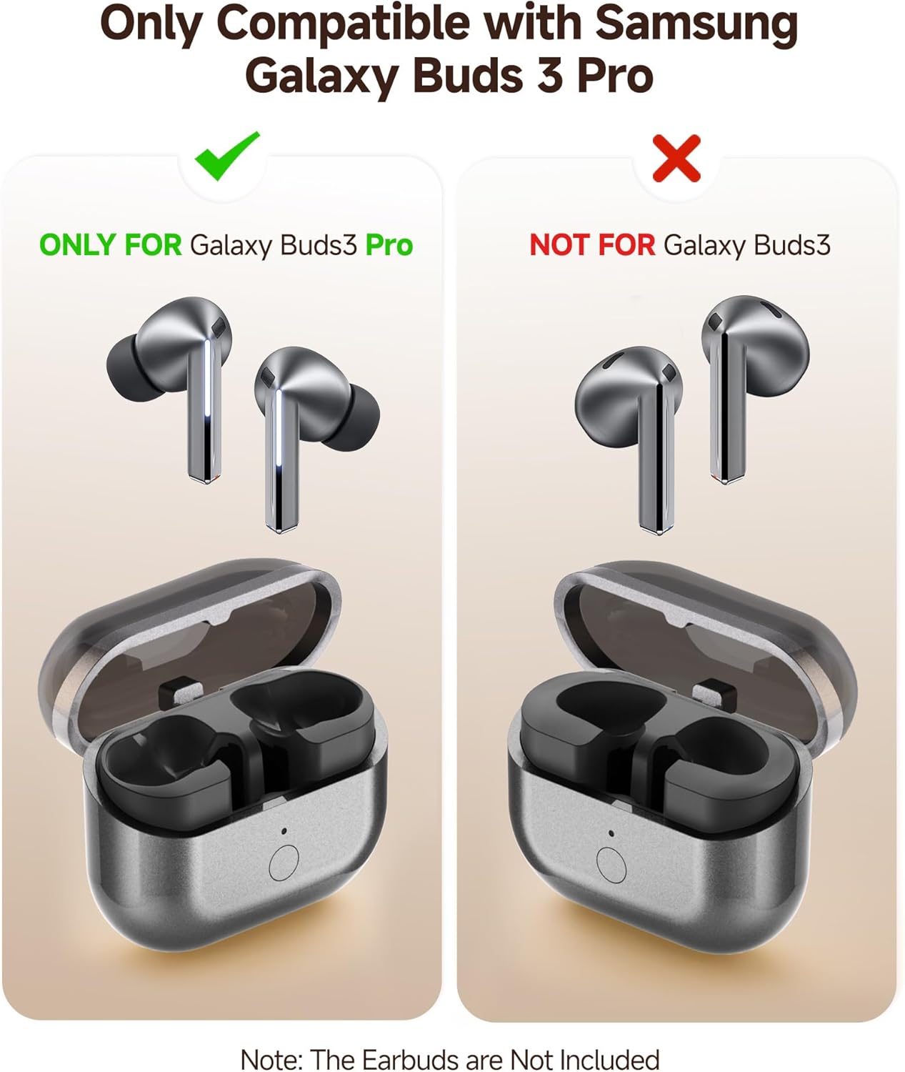 What's in the Box: 1 x Wireless Charging case compatible with Galaxy Buds 3 Pro (Earbuds is not included), 1 x USB-C cable, 1 x User Manual. If you have any questions about our Charging Case, please tell us, we will be here to help you!