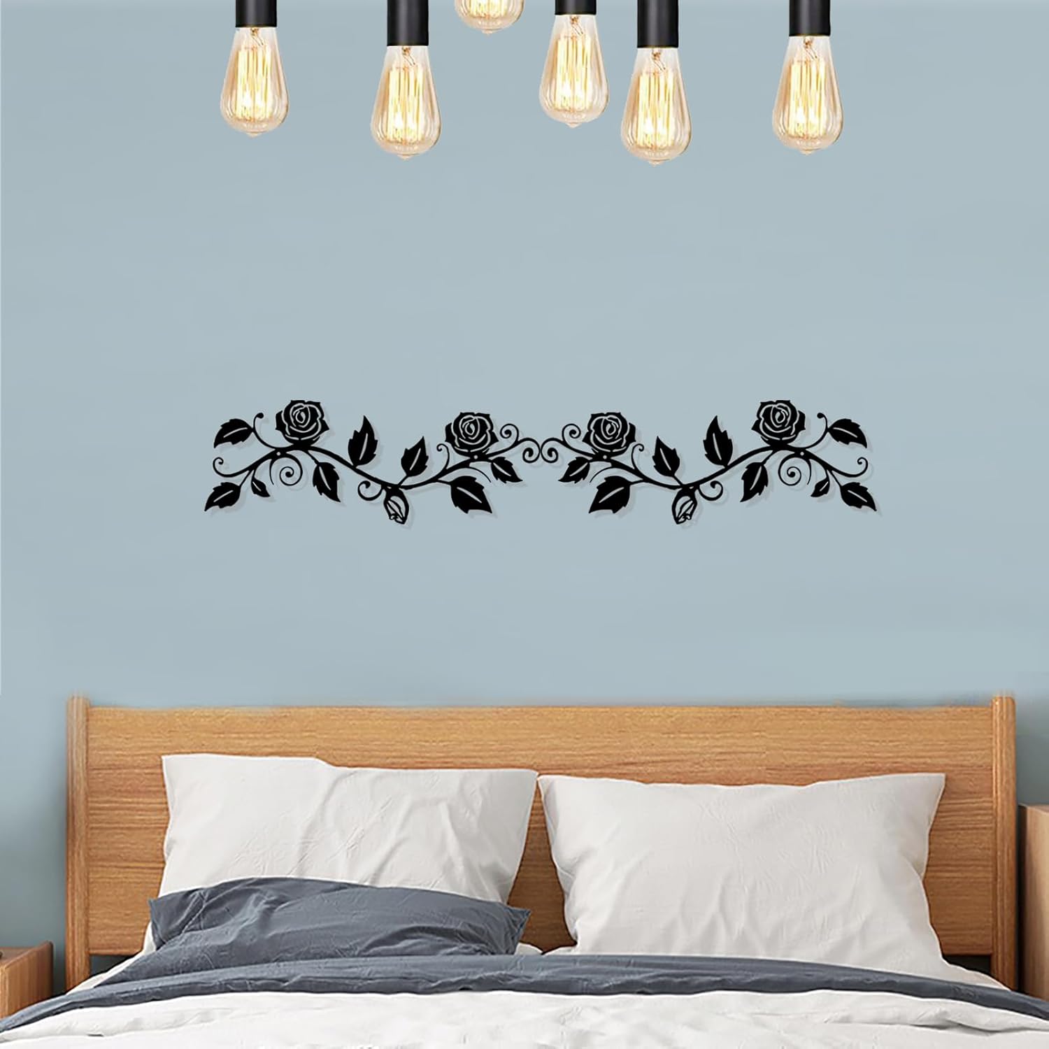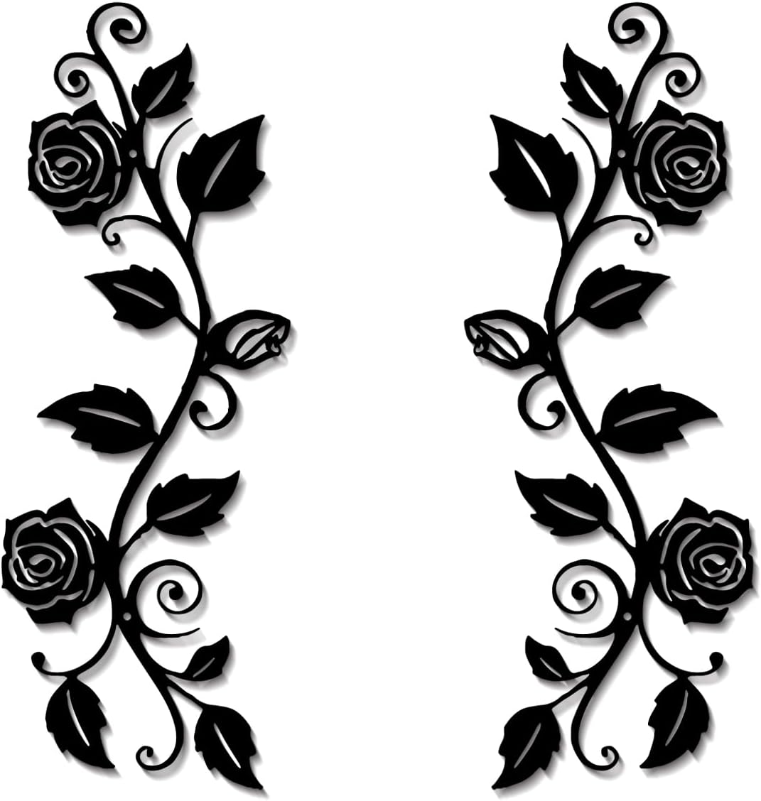 DUOOLN 2 Pcs Metal Rose Tree Leaf Wall Decor, Long Iron Scroll Vine Wall Art Above, Rustic Hanging Sign Flowers Sculpture, For Above Door Living Room Office Indoor And Outdoor Decoration - Black