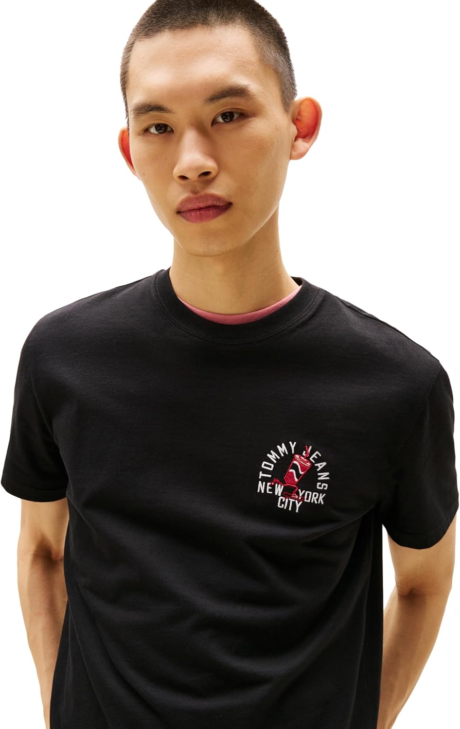 Tommy Jeans Men's Short Sleeve Cotton Graphic T-Shirts with Embroidered Chest Logo
