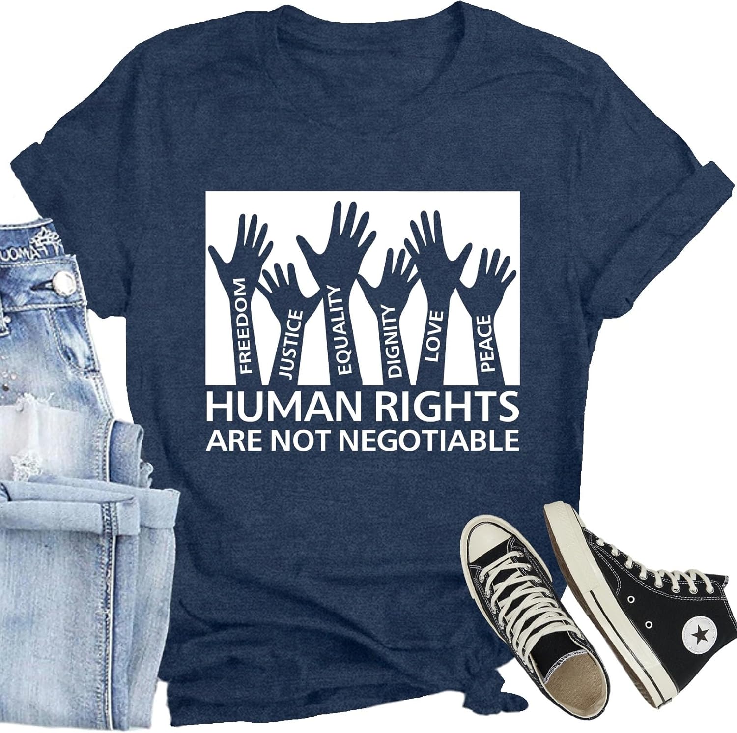 Women Equality T-Shirts Human Rights are Not Negotiable Printed Shirt Freedom Justice Tee Tops