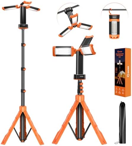 【Height Adjustable】The height of the Saker telescopic work light can be adjusted, with a minimum of 29.5 "and a maximum of 73.2", through three adjustable buckles on the main pole. The tripod structure is very stable, even when stretched to its maximum height, it will not shake, ensuring the quality of your lighting. After folding, the length is only 21 inches, making it convenient for you to carry when going out.