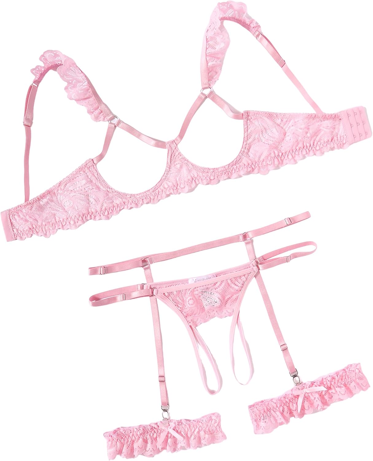 Avidlove Sexy Lingerie for Women Underwire Floral Lace Bra and Panty Garter Lingerie Sets S-XXL