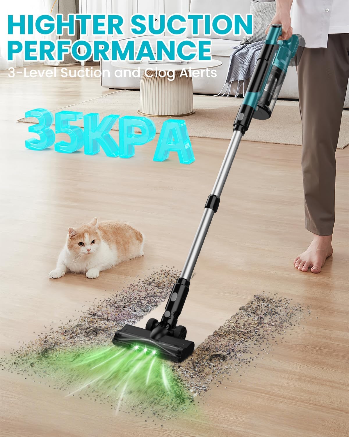 【350W Brushless Motor with 35KPA Suction 】 Ultra-Powerful & Efficient, Tackle even the toughest messes with a high-speed 350W brushless motor spinning at 120,000 RPM. Generates 35KPA of strong suction power across three adjustable modes, perfect for deep cleaning on carpets, hardwood, tiles, and more—leaving no dirt behind.