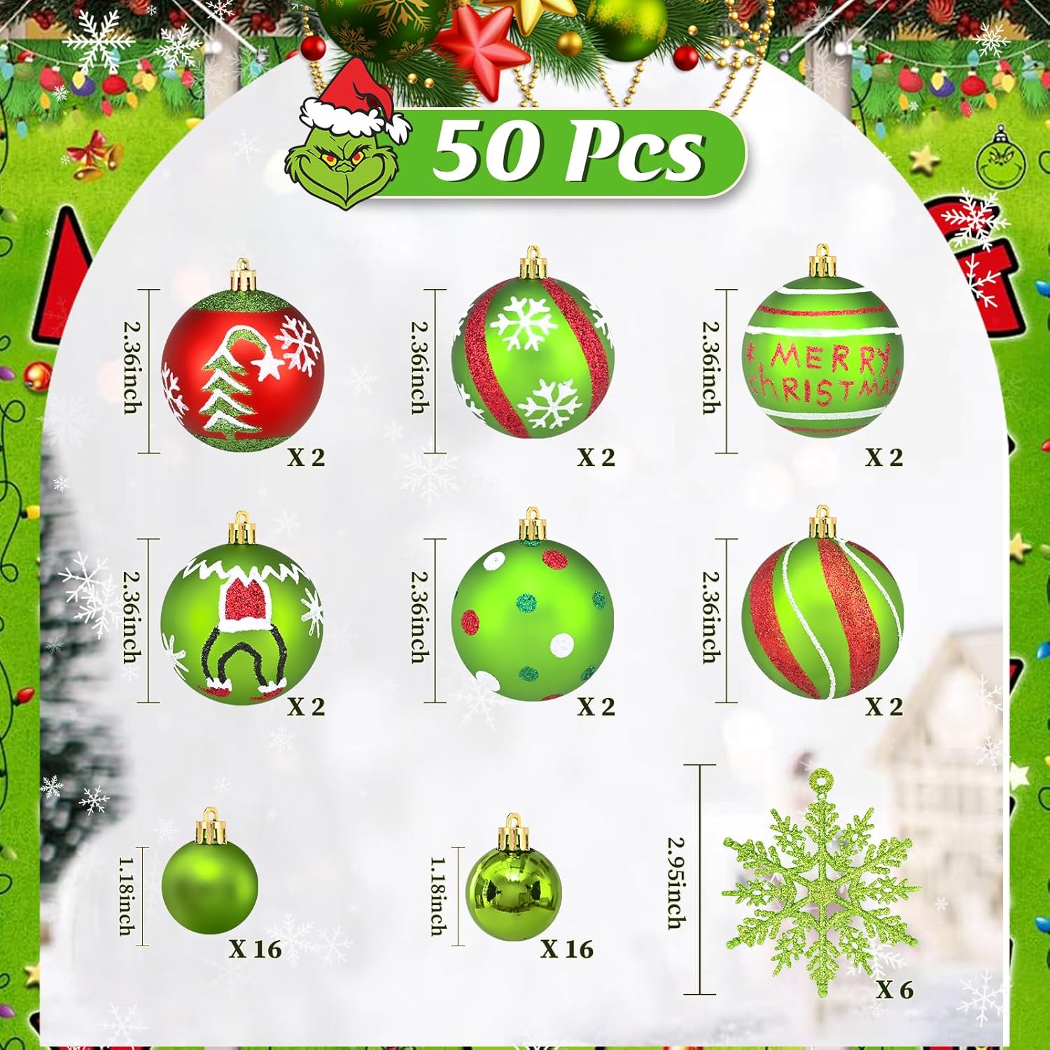 50Pcs Christmas Tree Ornaments - 2.36''/60mm Christmas Ball Ornaments Set for Xmas Tree Holiday Party Wedding Home Decorations (Green)
