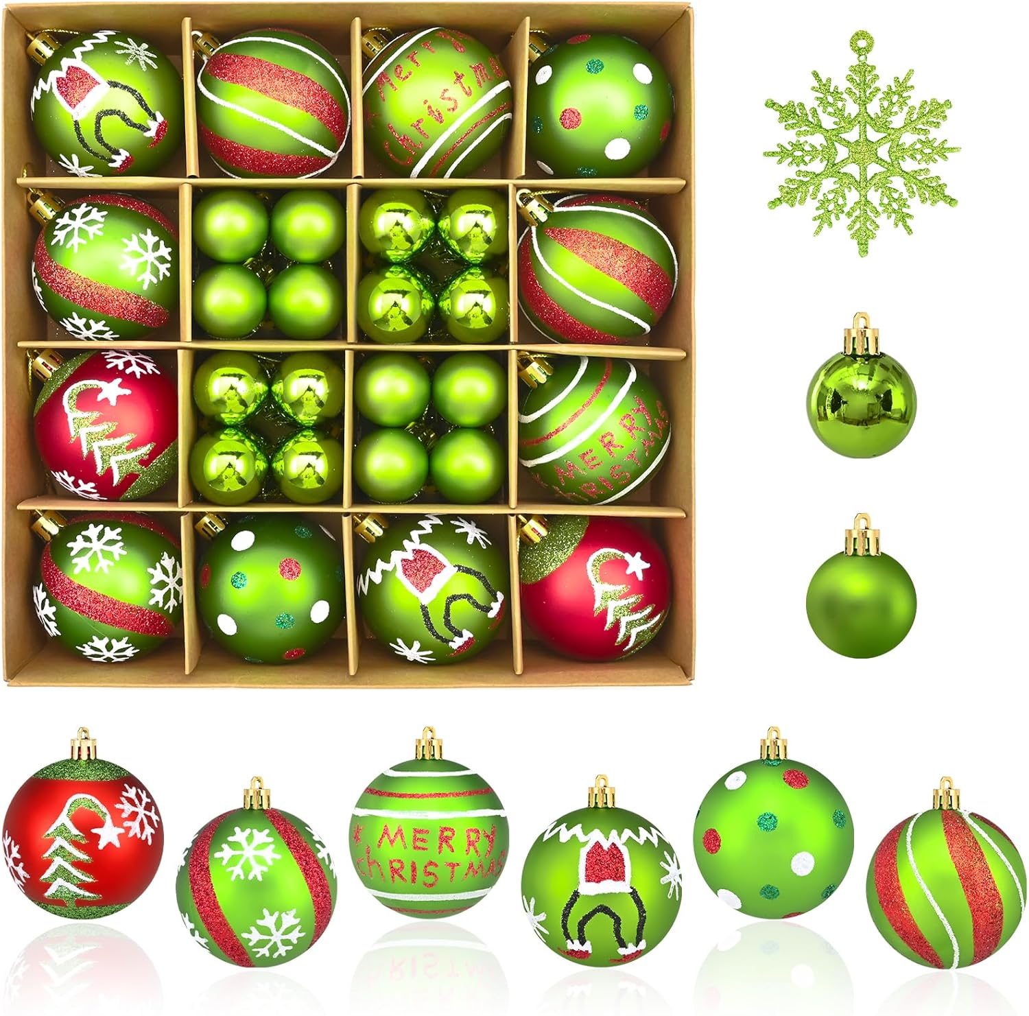 [Premium Quality]: This set of 50Pcs ornaments, featuring 1.18''~2.36''Christmas balls and snowflakes, fit all sizes of Christmas trees and make them look gorgeous and colorful. Our Christmas tree ornaments are crafted from high-quality, shatterproof plastic, ensuring they are durable and safe for both adults and children to handle.