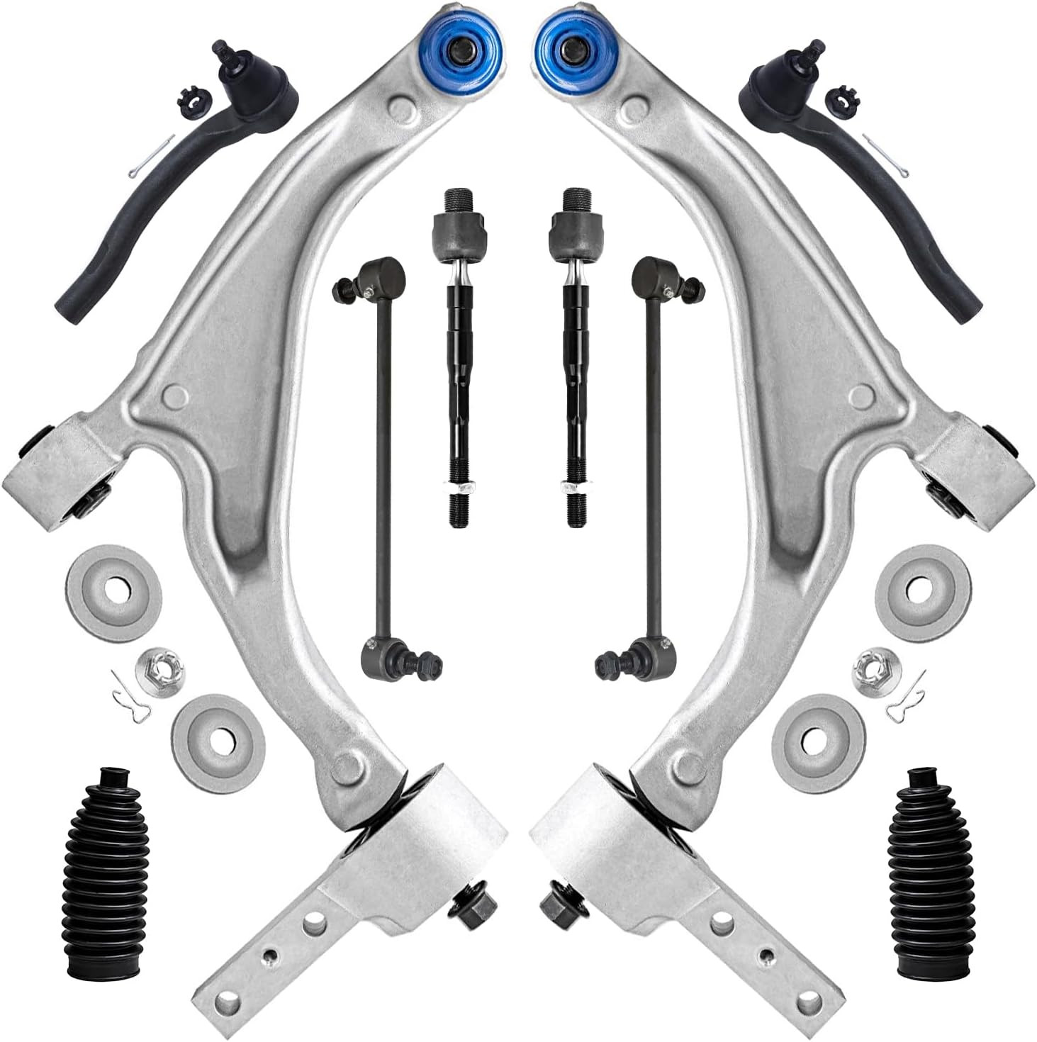 Detroit Axle - 10pc Front End Suspension Kit for 2009-2015 Honda Pilot, 2 Lower Control Arms with Ball Joints 4 Inner Outer Tie Rods 2 Sway Bars 2 Tie Rod Boots 2010 2011 2012 2013 2014 Replacement