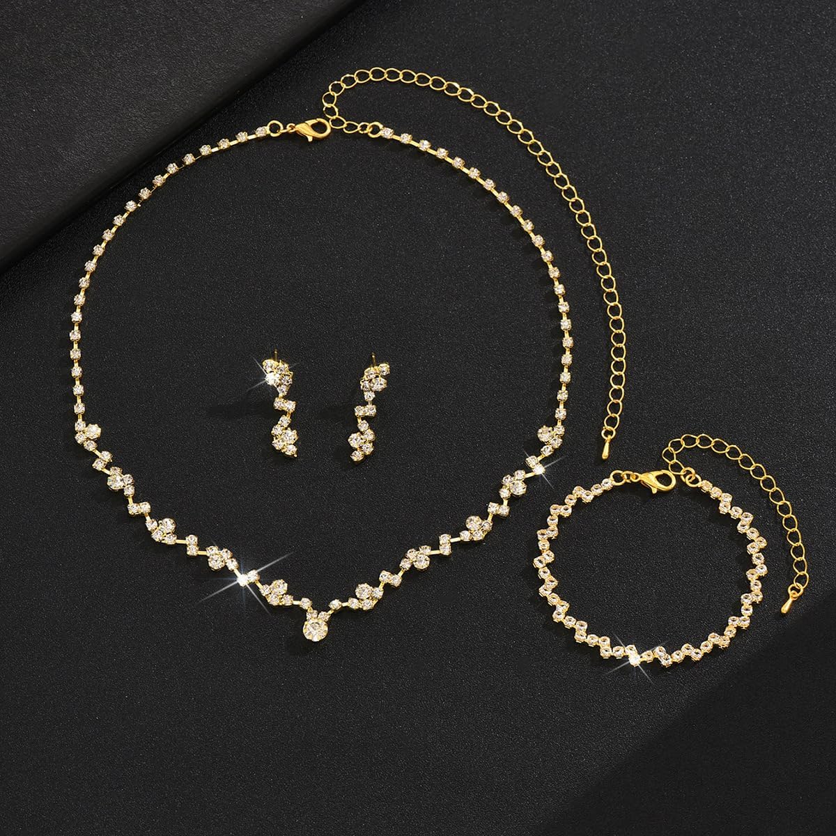 Prom Jewelry Sets Silver Jewelry Set for Brides Bridesmaid Elegant Crystal Prom Earrings Necklace Bracelet Set Bridal Wedding Prom Dresses Costume Jewelry for Women