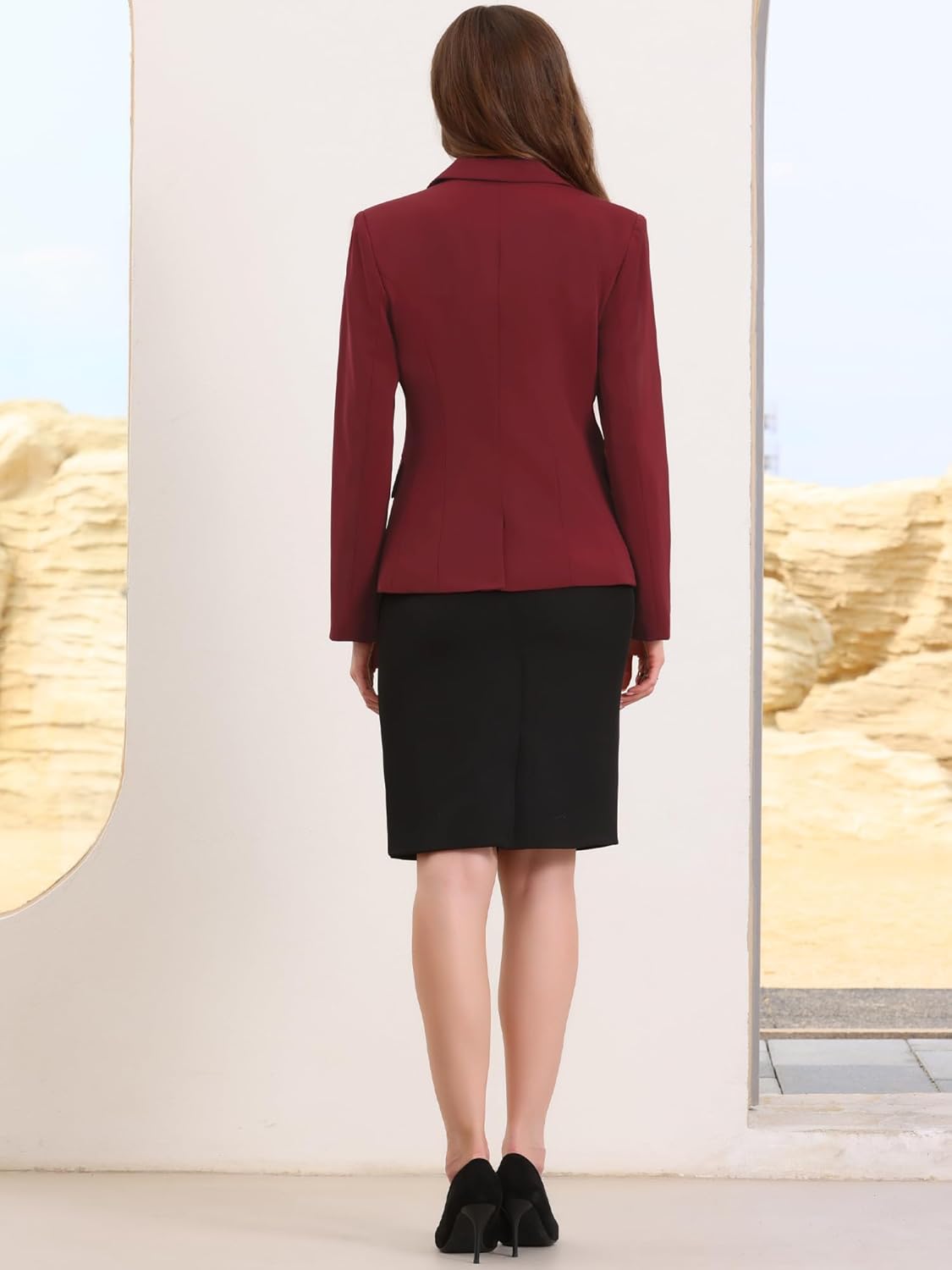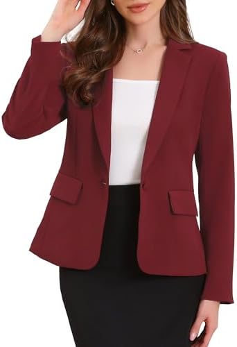 Allegra K Blazers for Women Business Casual Long Sleeve One Button Pockets Suit Jackets Work Office Blazer with Shoulder Pads