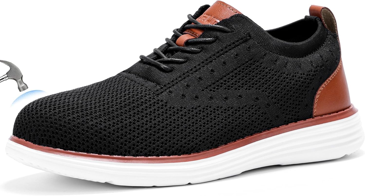 Furuian Steel Toe Shoes for Men Safety Shoes for Men Casual Dress Work Sneakers Lightweight Steel Toe Work Sneakers Comfortable Safety Tennis Oxfords