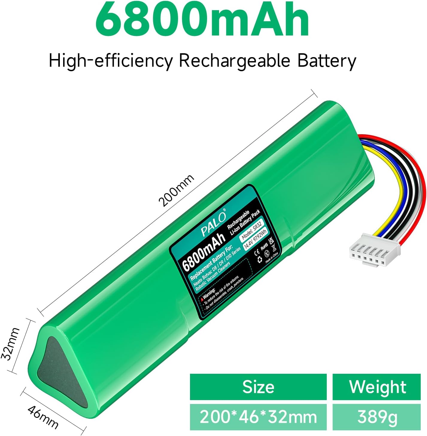 【D10 Same as original】Upgraded battery 6800mAh/97.92.6Wh large capacity and is an ideal replacement battery, voltage: 14.4V;1500 cycles of charging, the battery continues to maintain strong power.the best Neato Vacuum Cleaner replacement battery available.