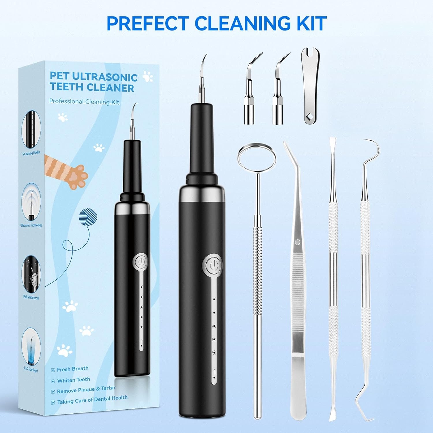 Dog Plaque Tartar Remover for Teeth, Pet Ultrasonic Tooth Cleaner, Dental Tools Cleaning Kit for Teeth Stains for Dogs & Cats with 5 Modes,Black