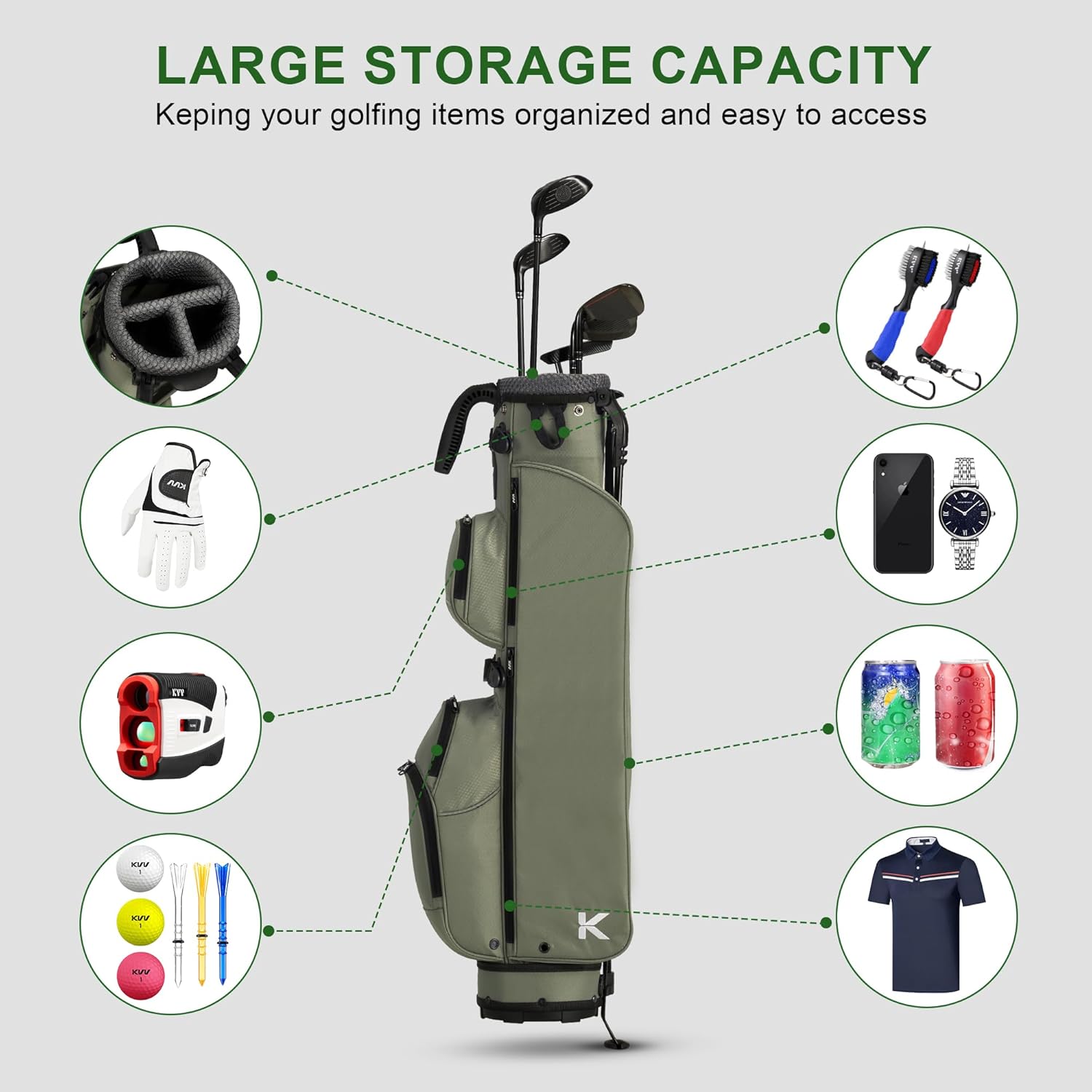 KVV Lightweight Pitch and Putt Golf Bag with Stand, Adjustable Dual Straps, Golf Stand Bag for Extra Storage in a Smaller Size