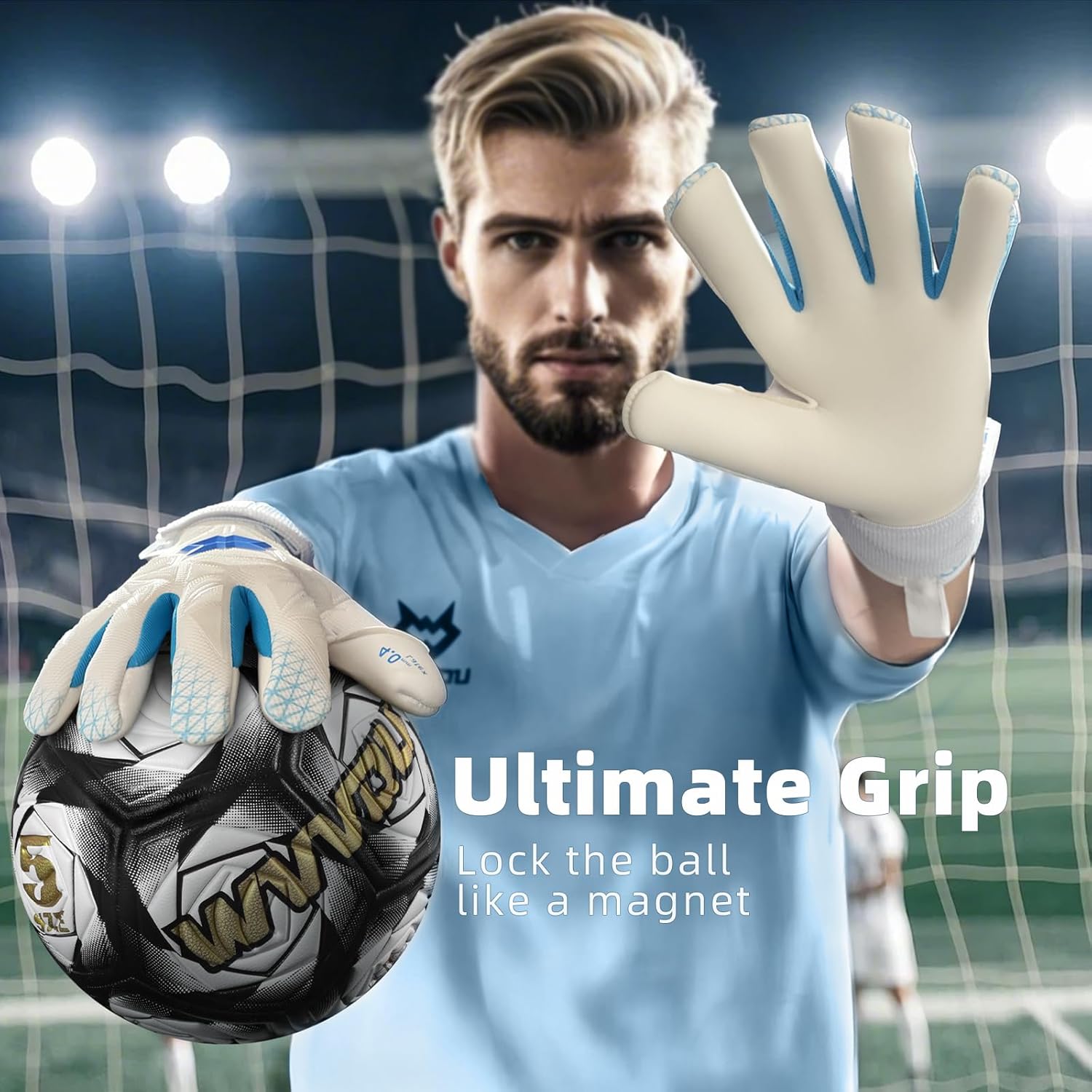 LIGHTWEIGHT AND COMFORTABLE: The soccer goalie gloves weighs only 80g in one hand, the flat hybrid cut is designed to improve knuckle flexibility and provide excellent wrap-around comfort, keeping blood flowing from fingertip warm-ups to penalty shoot-outs, and making every tackle as free and accurate as the barehanded one.