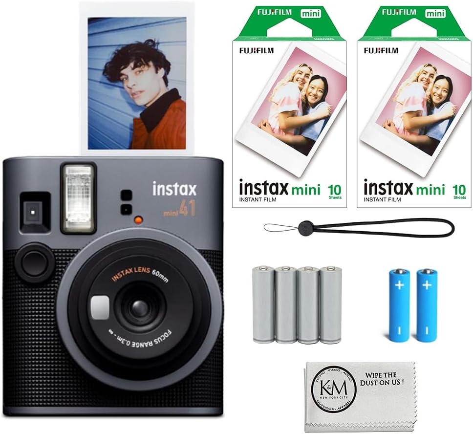 FUJIFILM INSTAX Mini 41 Instant Camera Bundle with Instax Mini Film | 20 Exposures + 4 Pack AA Batteries + Cleaning Cloth (4 Items)