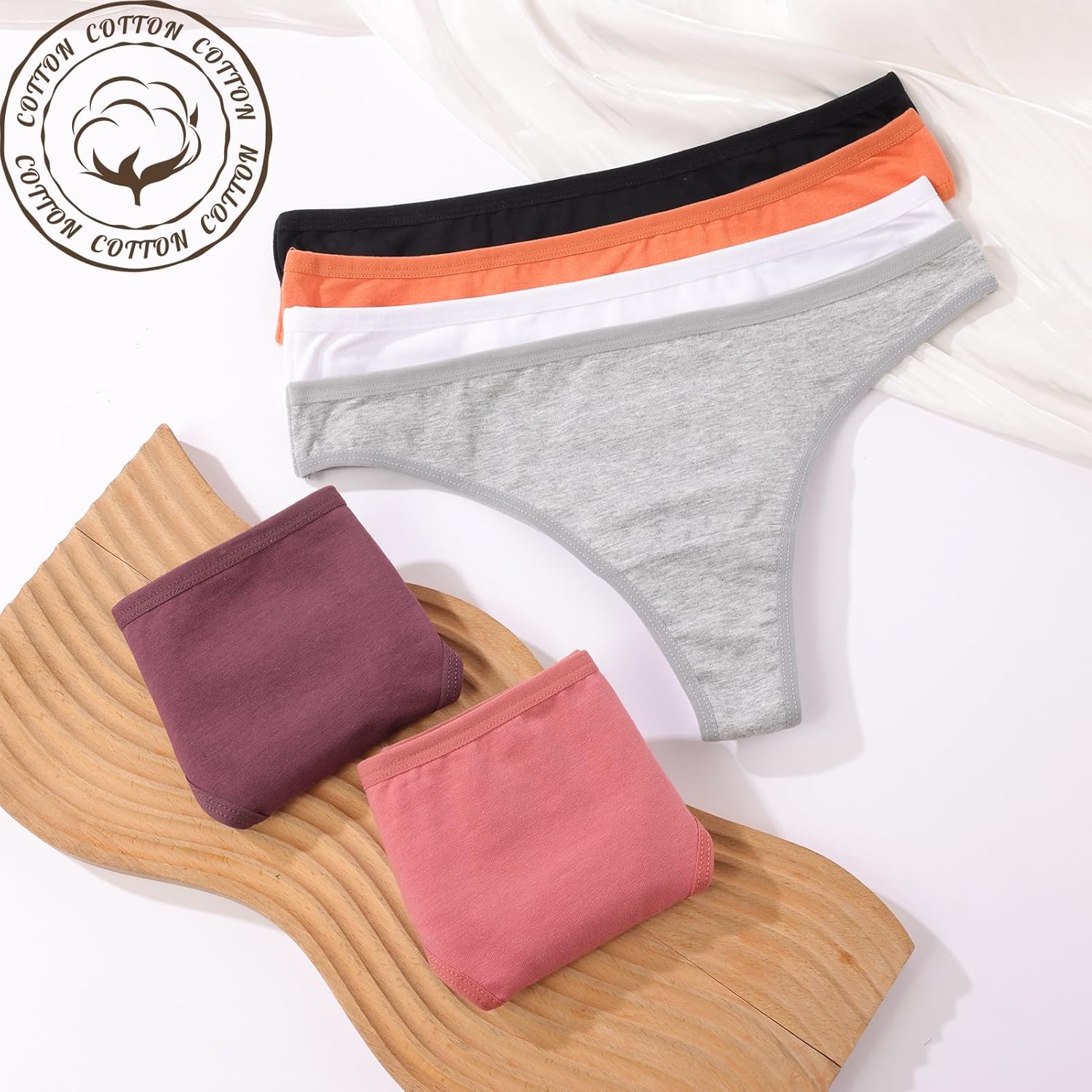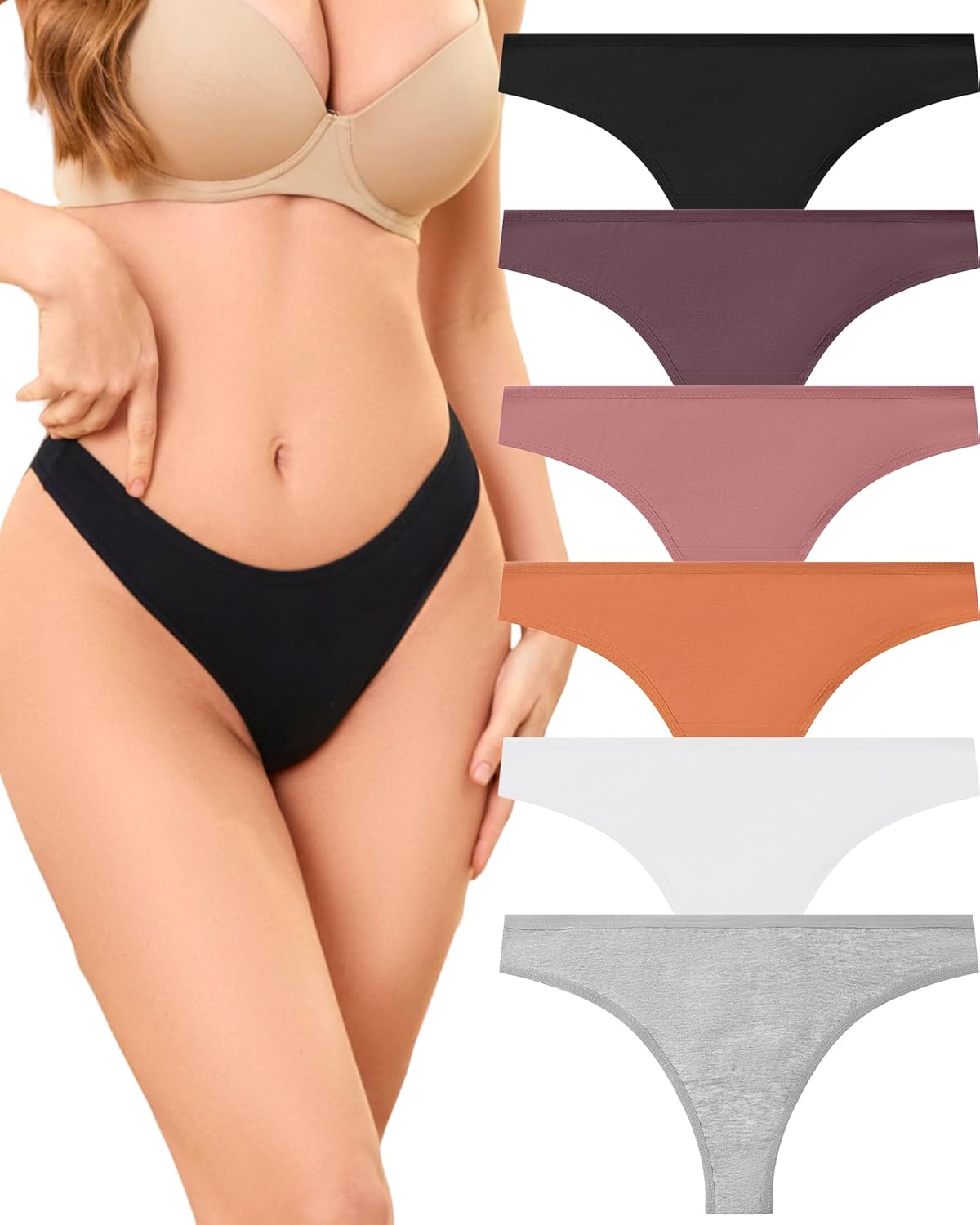 6 Pack Womens Underwear Cotton Breathable Thongs for Women Sexy Stretch Cheeky Soft Panties Thong Basic