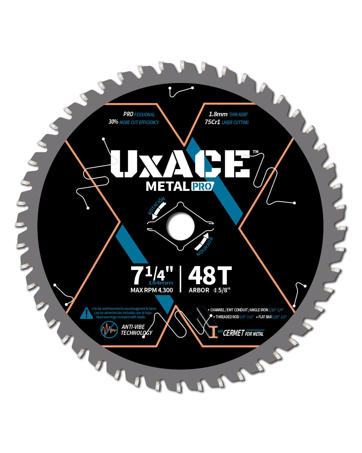 【WIDE RANGE OF APPLICATION】UXACE professional metal blade possesses extraordinary cutting performance and long-lasting durability. With thin kerf design, hi-density cermet carbide and 75Cr1 hardened steel body, UXACE circular saw blades are suitable for anyone looking for smooth and clean cutting experience on steel, ferrous metal, channel, EMT conduit, angle iron, threaded rod and flat bar using a corded or cordless circular saw, trim saw or chop saw