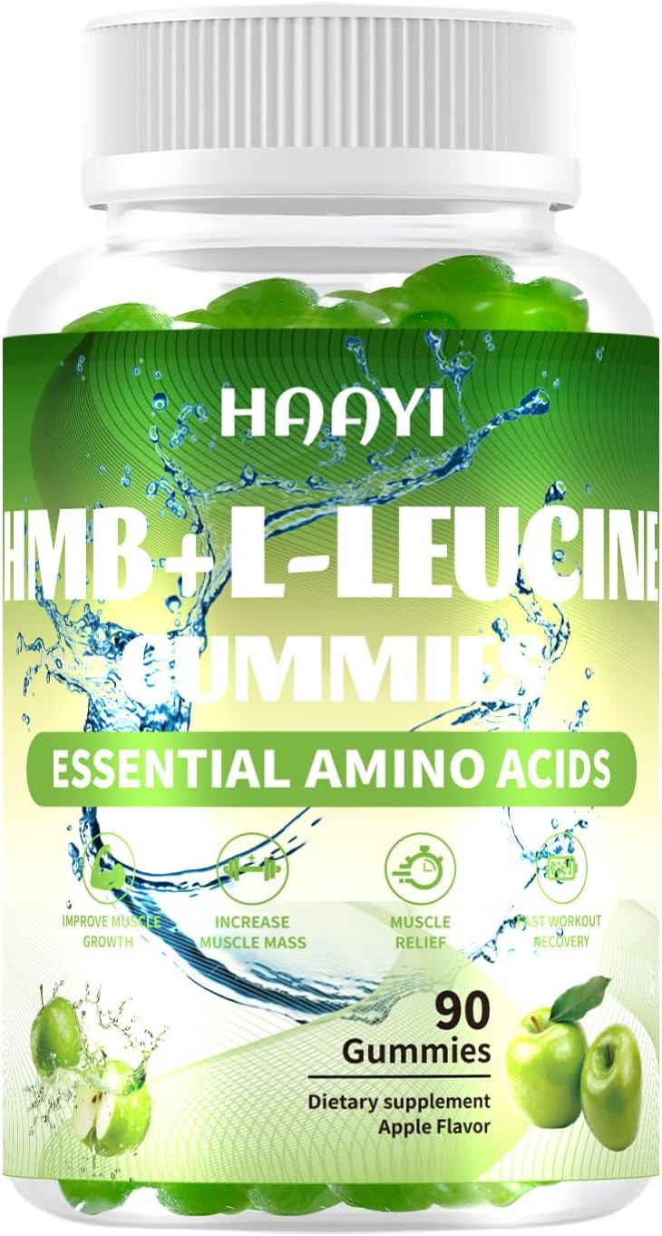 HMB and L-Leucine Gummies, 3000mg,Sugar Free,HMB Supplements for Men&Women with Trehalose, for Muscle Growth, Muscle Relief and Workout Recovery, Apple Flavor, 90 Gummies