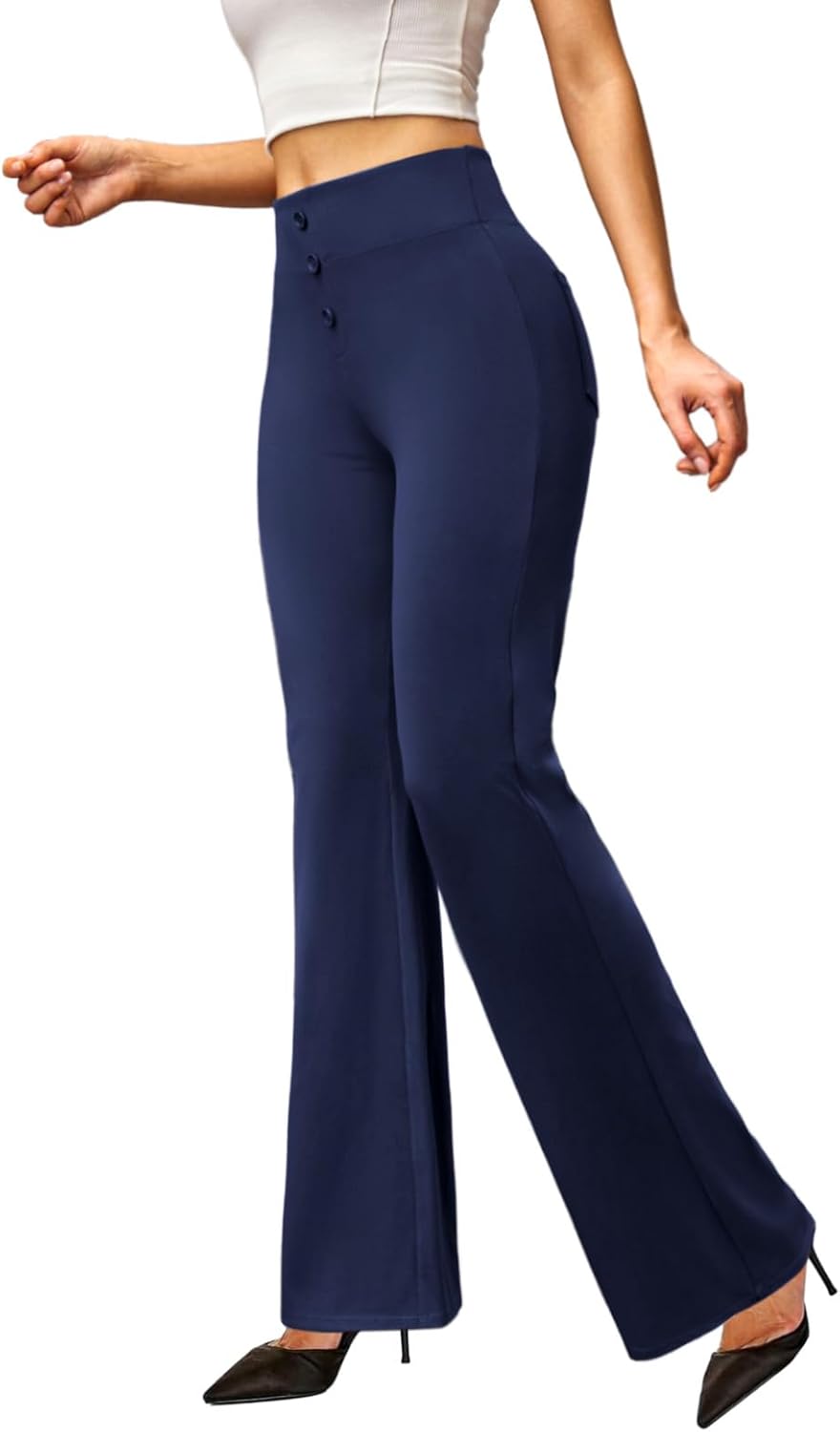 keriffe Womens Bootcut Dress Pants High Waist Stretchy Business Work Casual Trousers with Back Pockets Office Slacks