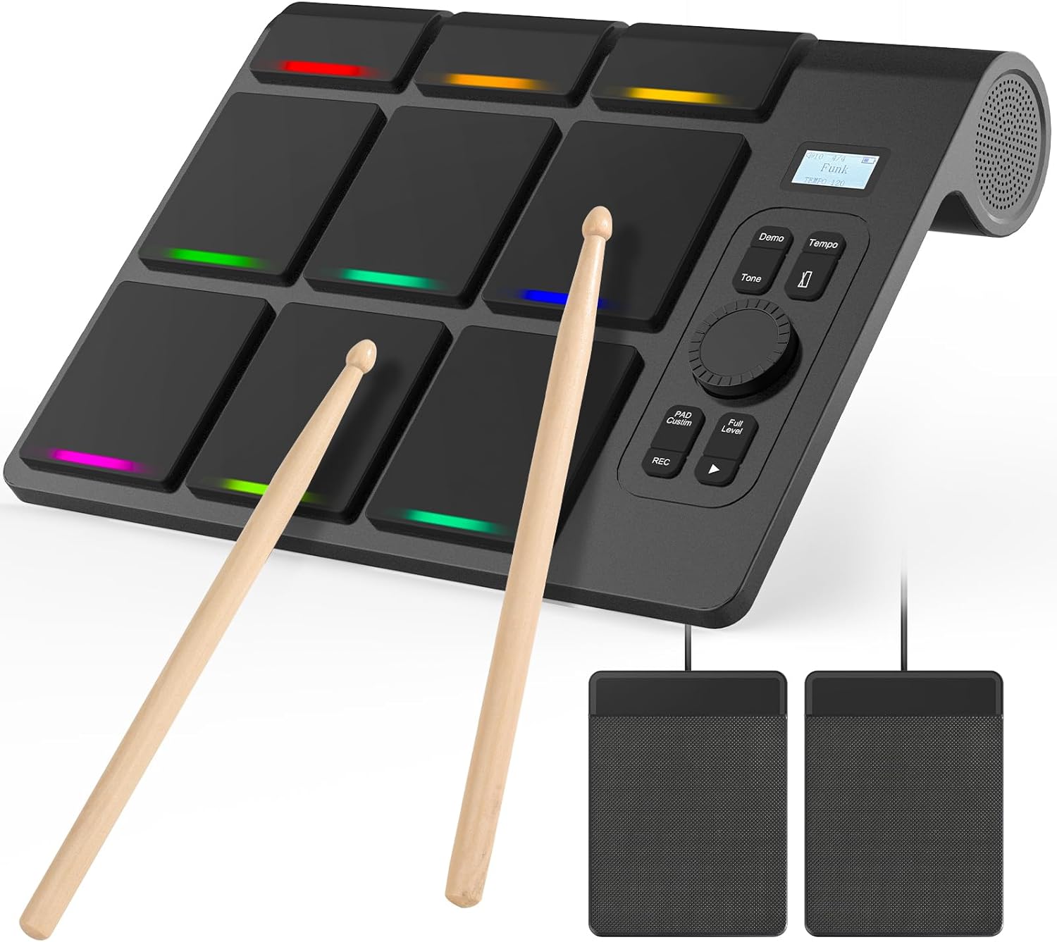 Infinite Creativity of Drum Sounds:The tabletop drum set comes with diverse functions. It covers all genres with 16 drum sounds and 10 demo songs. The digital panel enables quick control, and the recording function allows you to capture your creative process at any time