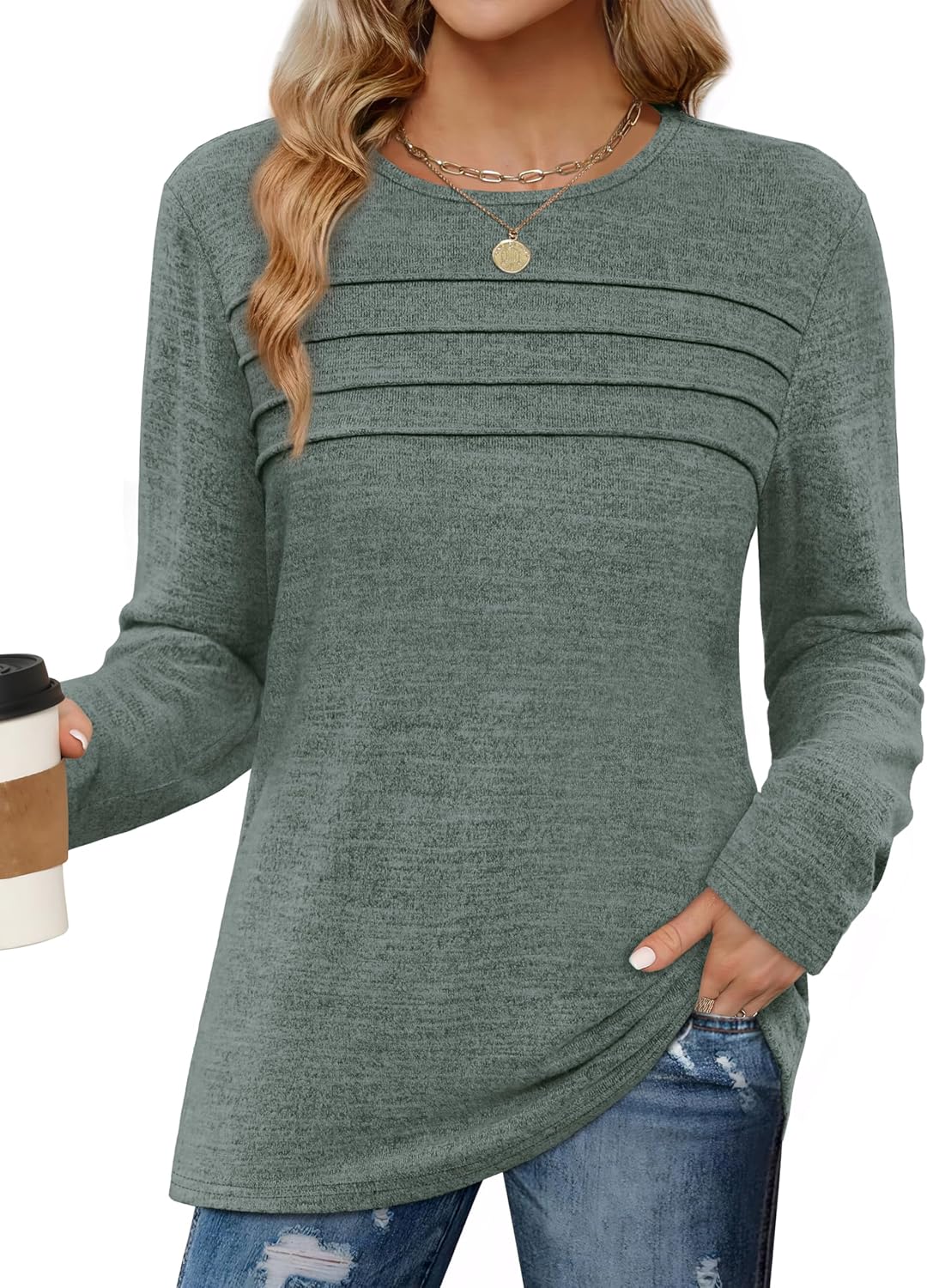 WIHOLL Long Sleeve Shirts for Women Tunic Tops Fall Sweaters Fashion 2025 Winter Clothing Sweater