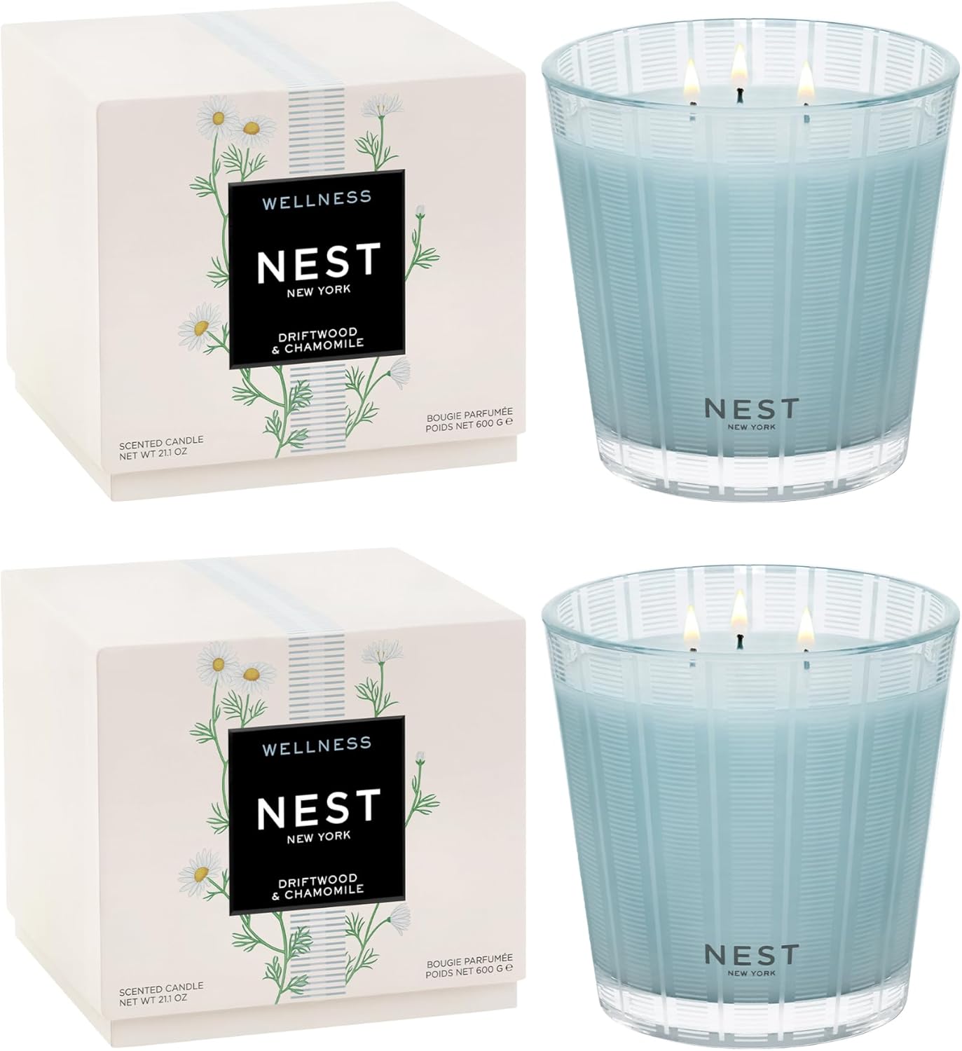 NEST New York Scented 3-Wick Candle, Driftwood & Chamomile - 21.2 oz, Pack of 2 - Up to 100-Hour Burn Time - Reusable Glass Vessel