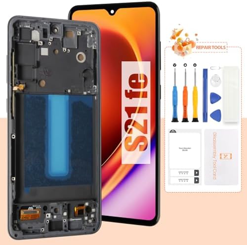 AMOLED Screen for Samsung Galaxy S21 FE 5G Screen Replacement for Samsung S21 FE LCD Screen SM-G990B,SM-G990U Touch Display Digitizer Assembly Repair Parts with Frame(Black with Fingerprint Function)