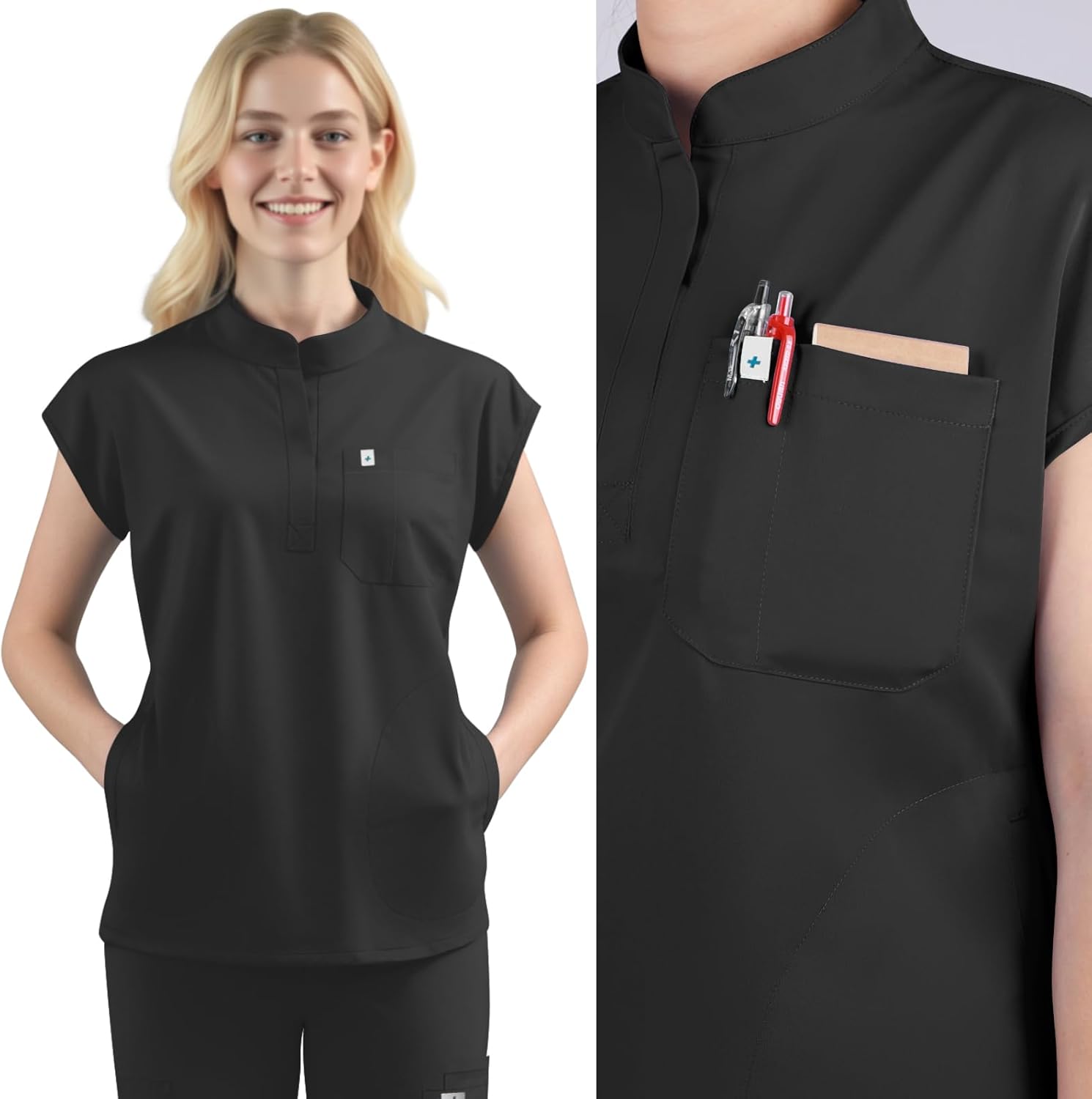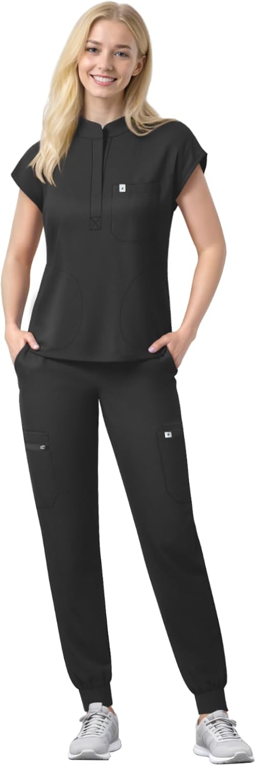 Scrubs Set for Women Medical Uniform Nurse Suit, Anti-Wrinkle Scrub Top Jogger Pant&11 Pockets,4 Way Stretch Workwear