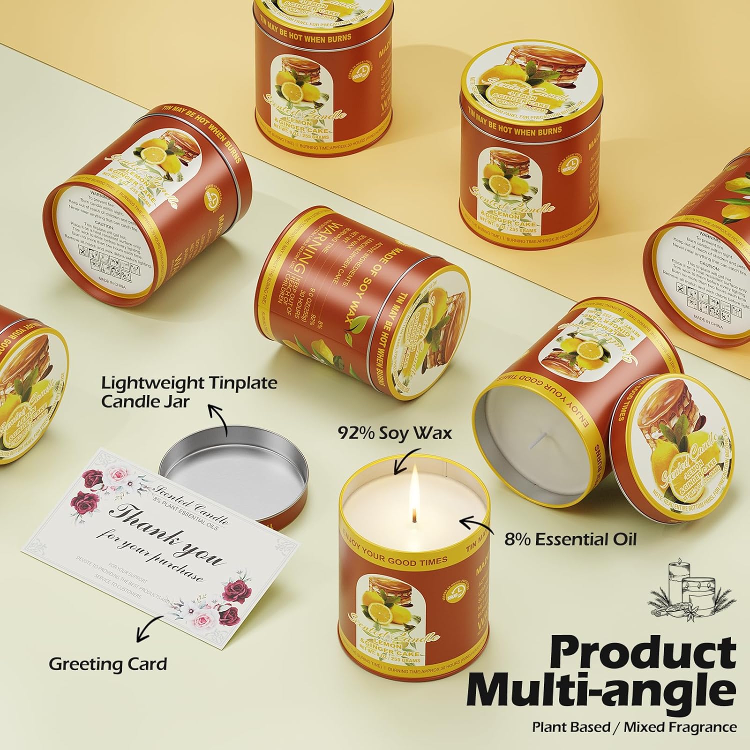 🛡️【Eco-Safe & User-Friendly】Pet-Friendly Design Pure soy wax and Cotton wicks ensure safe use around kids/pets. Easy-to-open tins with secure lids make storage hassle-free. A healthier choice for eco-conscious households!