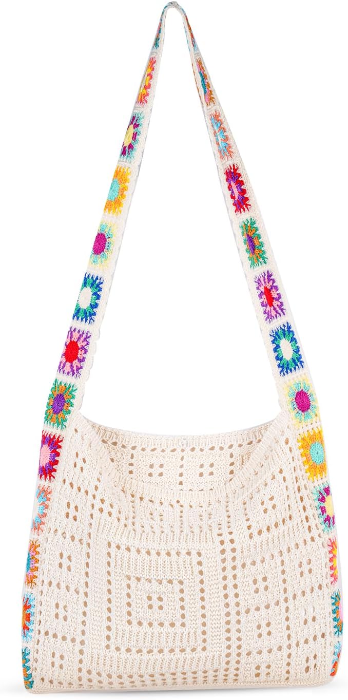 Crochet Beach Tote Bag Summer Vacation Hobo Tote Knit Bags for Women Mesh Woven Travel Crochet Purse Aesthetic Bag