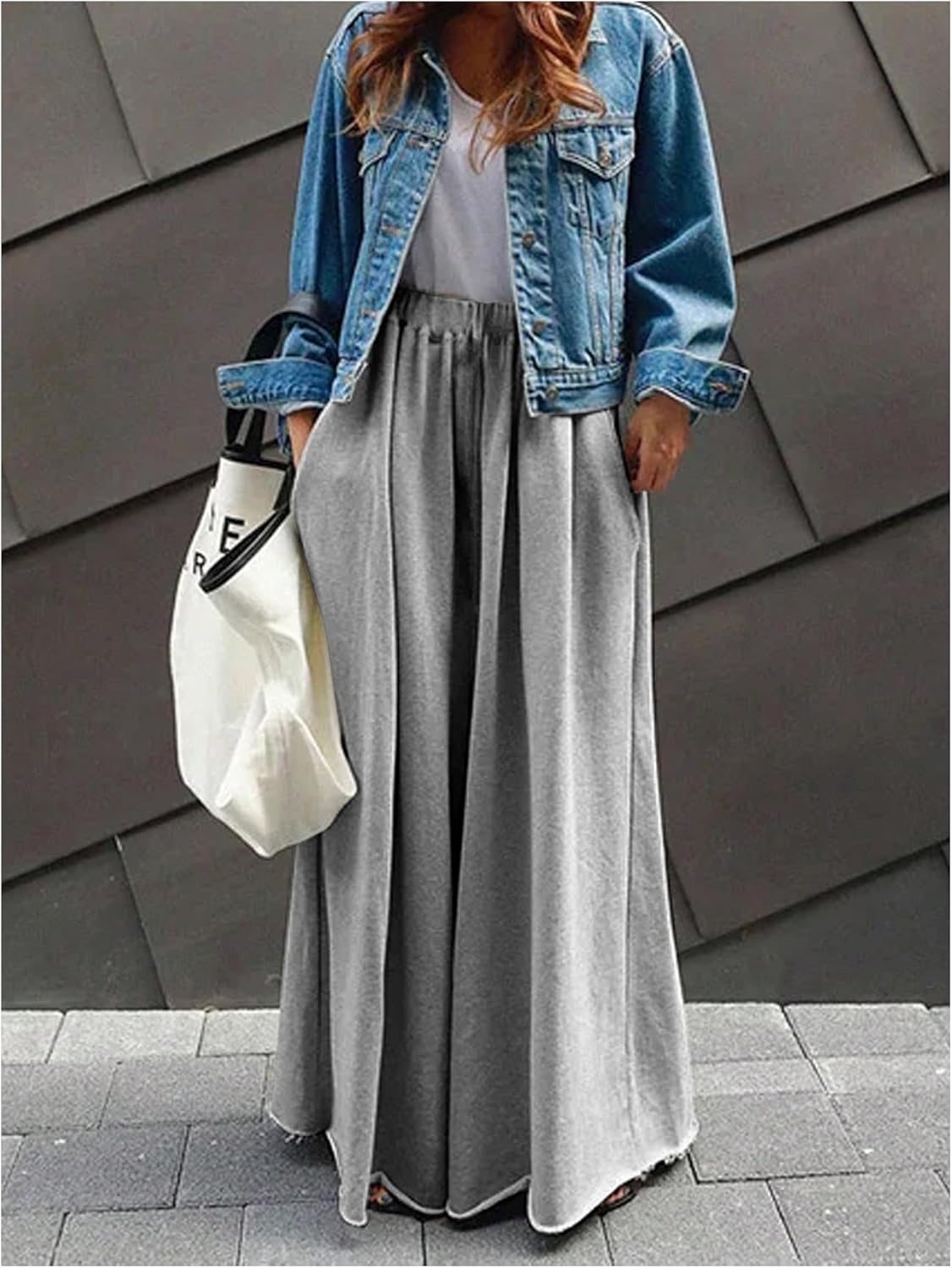 Women's Wide Leg Sweatpants High Elastic Waist Flowy Palazzo Pants Loose Baggy Pants Bottoms