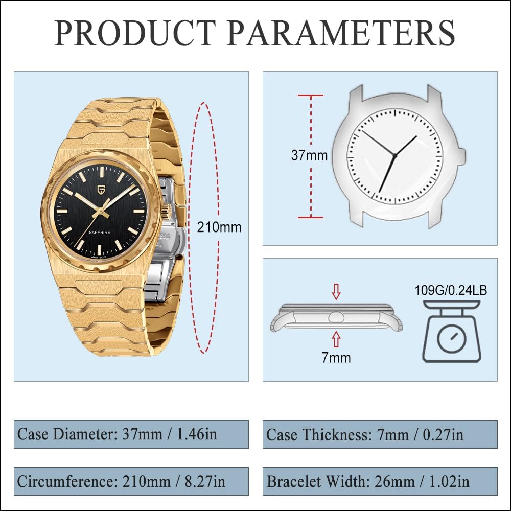Pagani Design Watches for Men 7MM Ultra Thin Minimalist Men's Quartz Watch, Sapphire Glass 316L Stainless Steel Wristwatch, 100M Waterproof丨Luminous