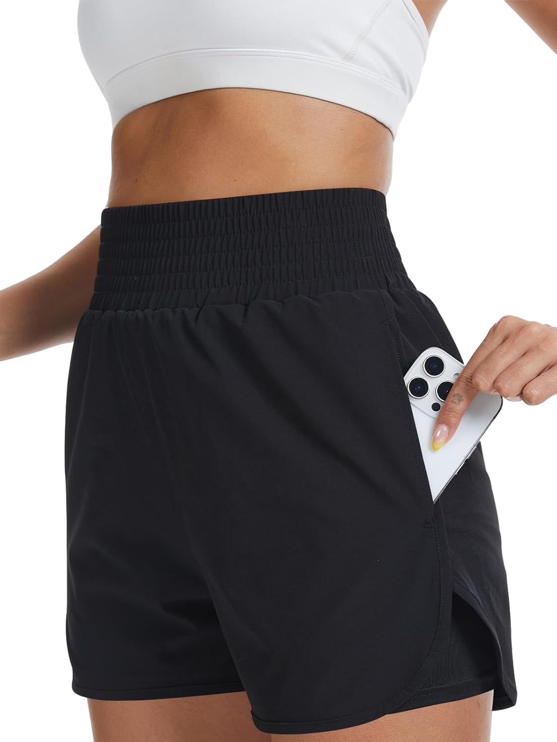 Women's High Waisted Athletic Running Shorts with Side & Back Zipper Pockets, Built-in Liner for Workout, Gym, Casual Wear