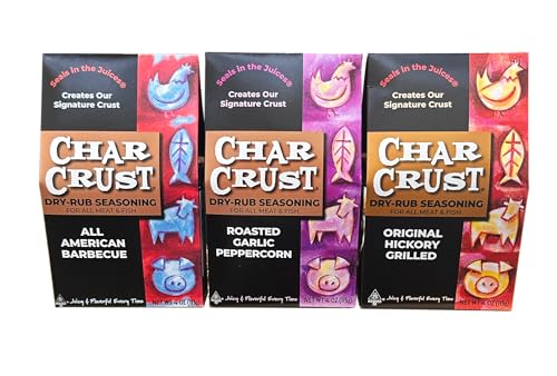 Char Crust Dry-Rub Seasoning Pack, Grilling Pack, Top 3 Flavors: All American BBQ, Roasted Garlic Peppercorn, Original Hickory Grilled, 4 oz Each (Pack of 3)
