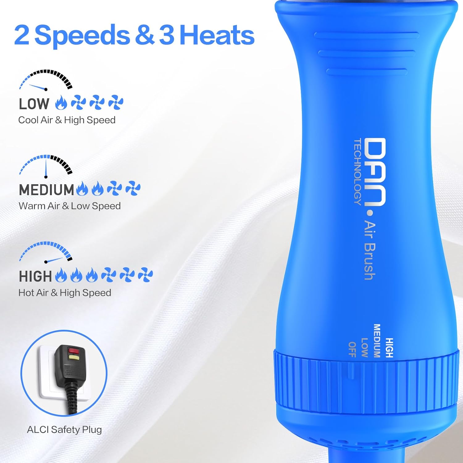 Dan Technology Blow Dryer Brush Hair Dryer Brush Hot Air Blowout Brush 120V 3 Speeds Oval Shape Volumizer Straightener Brush Faster Drying Mini Size Lightweight (Blue)