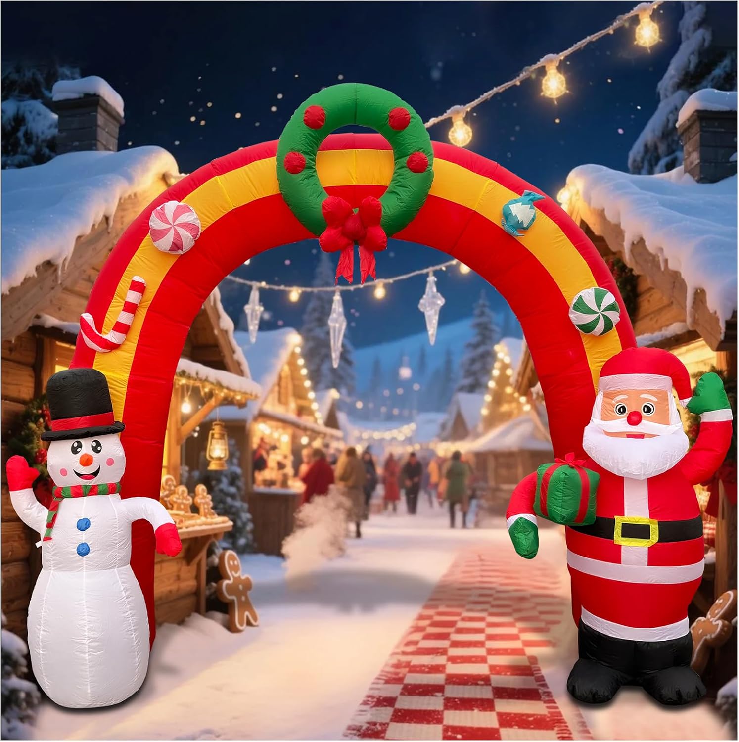 11.8 FT Christmas Inflatables Archway, Blow Up Santa Claus and Snowman Inflatables Arch Outdoor Decorations with Built-in LED Lights for Xmas Holiday Party Indoor Outdoor Garden Lawn Winter Decor