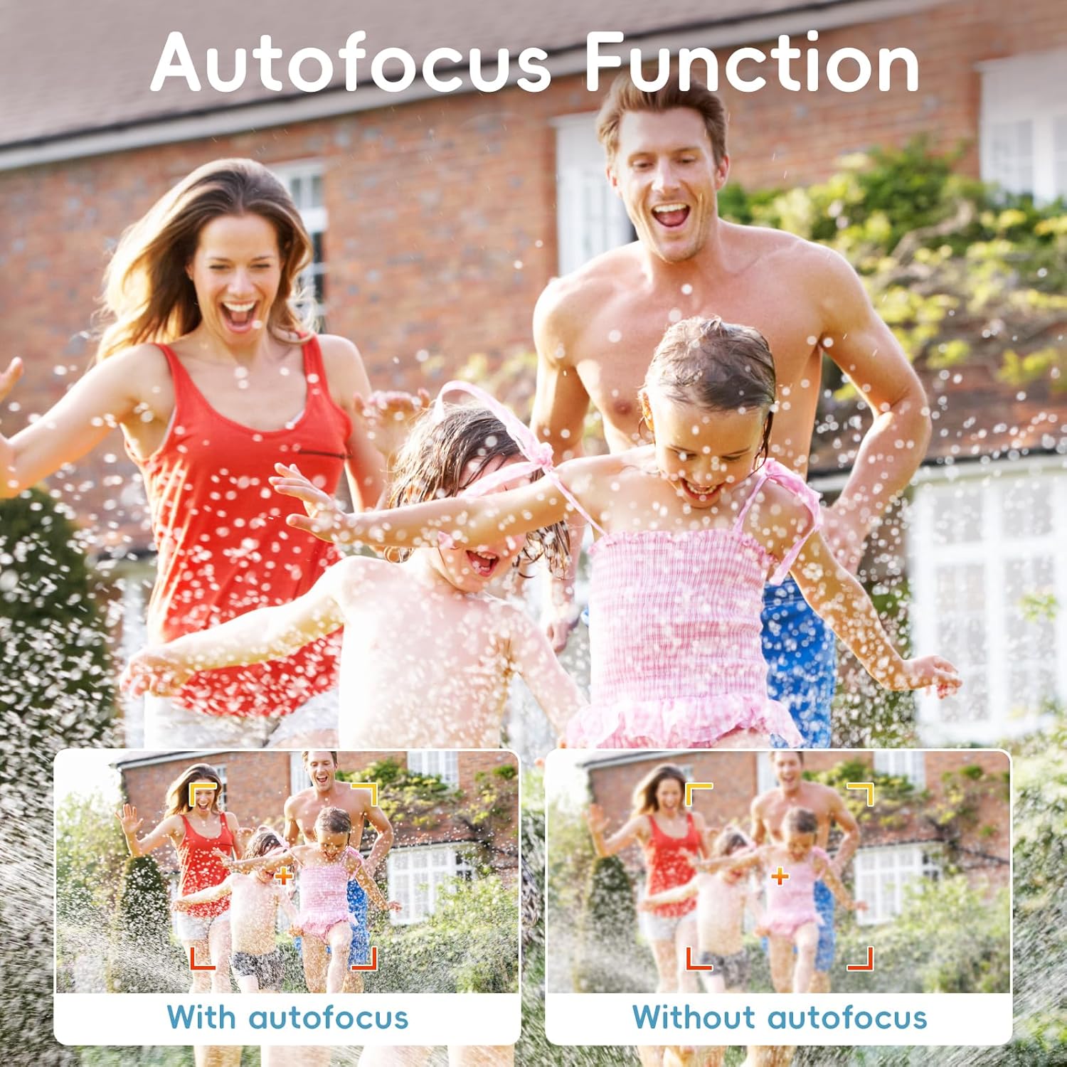 【Autofocus, 4K 48MP Camera】 This compact camera has a 48MP image resolution that can capture every moment with clear details. The underwater camera has an autofocus function. You can focus by half-pressing the shutter. The focus frame on the screen turns green, and then press the shutter fully to take beautiful photos. Even beginners can do it easily.