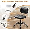 Sweetcrispy Small Office Desk Chair - Armless PU Leather with Comfy Lumbar Support, Height Adjustable Rolling Swivel Task for No Arms, for Adult, Student, Bedroom, Home, Vanity, Black