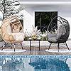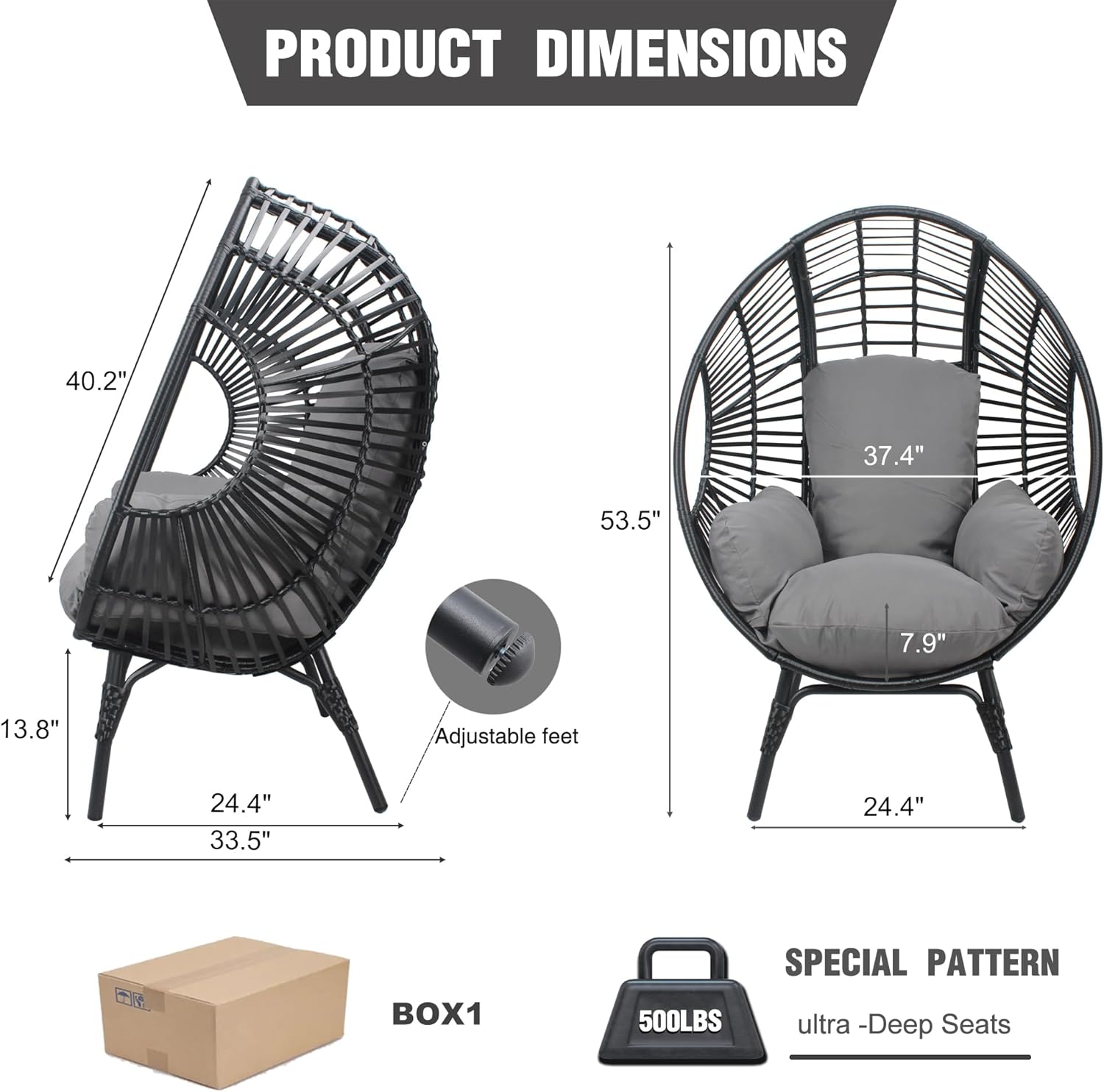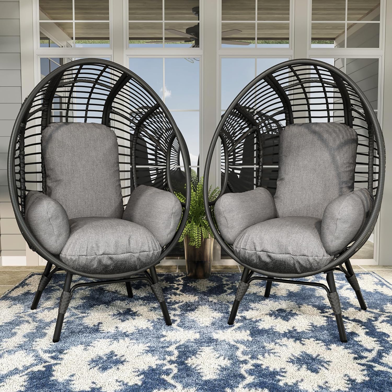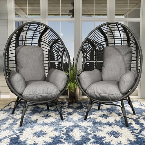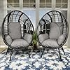 2 pcs Oversized Wicker Egg Chair Outdoor Indoor - Rattan Patio Egg Lounge Chairs with Cushion 500lbs Capacity for Living Room, Balcony, Backyard