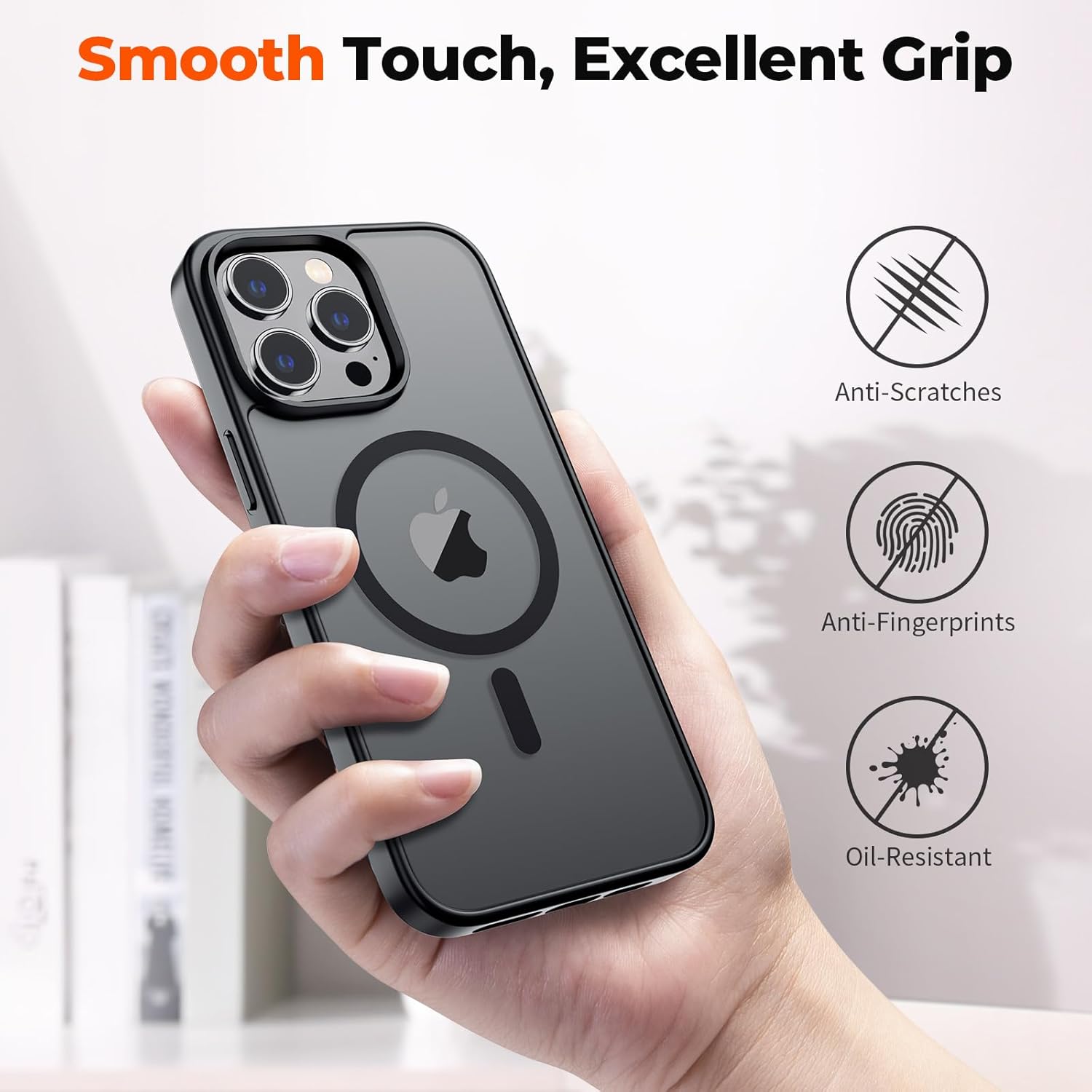 Magnetic for iPhone 13 Pro Case, [Compatible with MagSafe] [Military Grade Drop Protection] Translucent Matte Shockproof Anti-Scratch Phone Case, Black