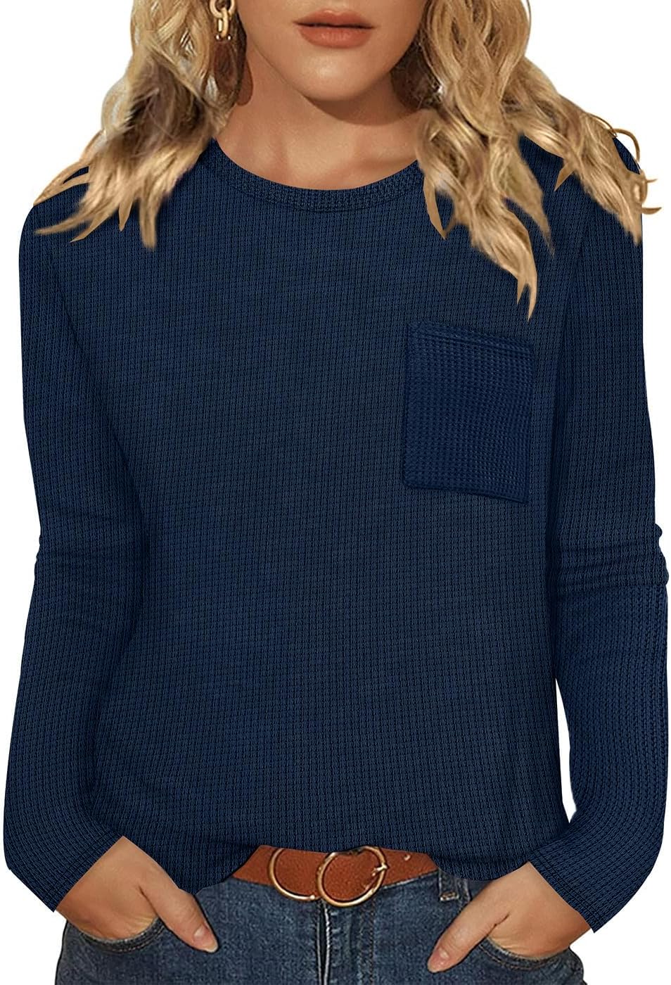 WIHOLL Long Sleeve Shirts for Women Waffle Knit Trendy Fall Fashion 2025 Dressy Casual Blouses Teacher Outfits
